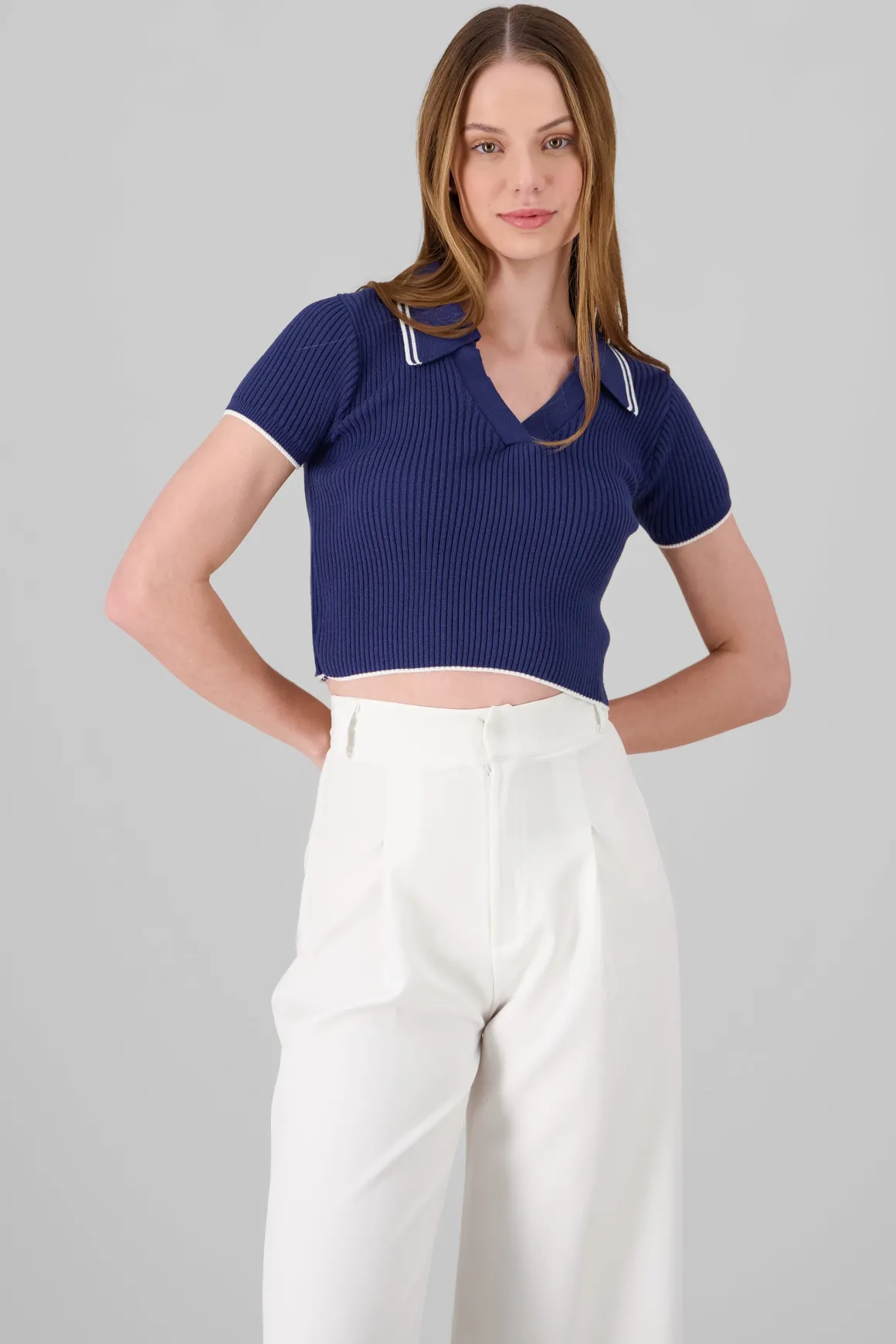 Descubre la prenda ideal para elevar tu estilo diario con un toque único. Este top con un diseño de tejido a contraste se convierte en el protagonista de tu guardarropa, perfecto para cualquier ocasión.