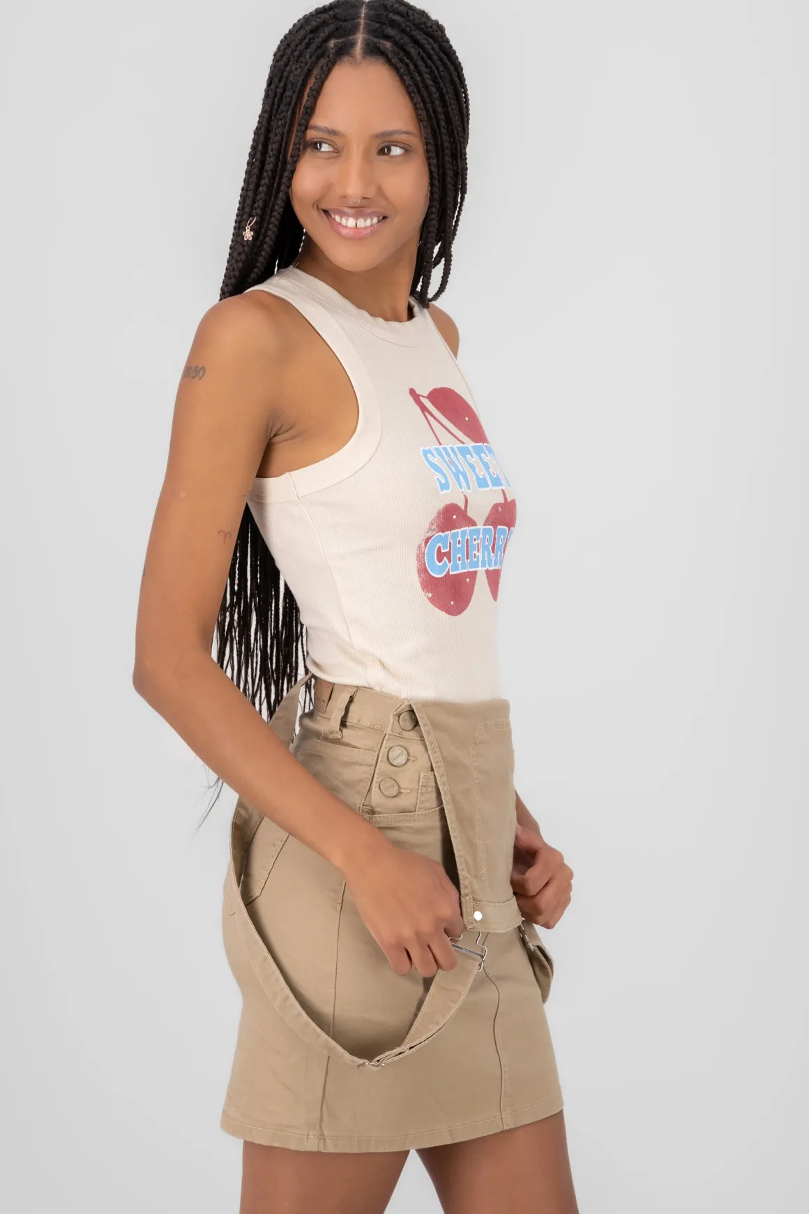 Este top acanalado sin mangas es una adición encantadora a tu armario. Con un diseño de cuello redondo y un estampado de cerezas, es perfecto para un look fresco y juvenil. La textura acanalada le da un toque interesante y moderno, ideal para combinar con shorts o faldas de verano. Es una prenda versátil que puedes usar tanto para una salida casual como para un día de relax. Añade un toque de diversión a tu estilo con este adorable top.