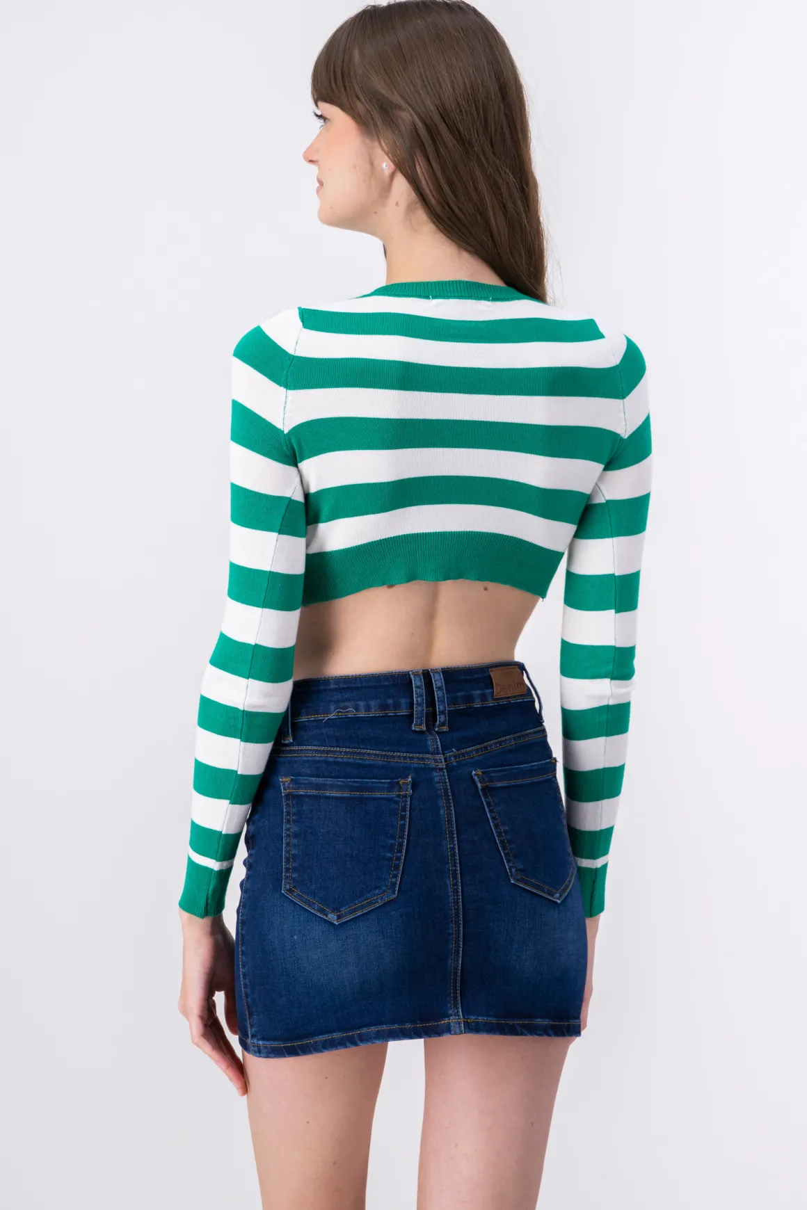 El top rib manga larga cuello redondo rayas es la elección perfecta para cualquier ocasión. Este top ofrece estilo clásico y comodidad duradera.