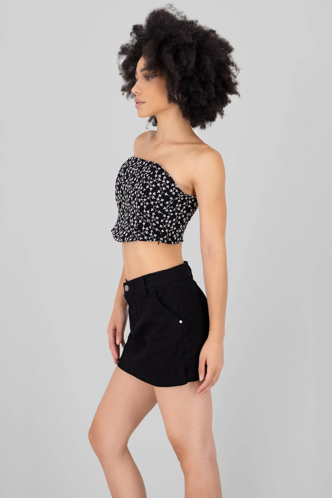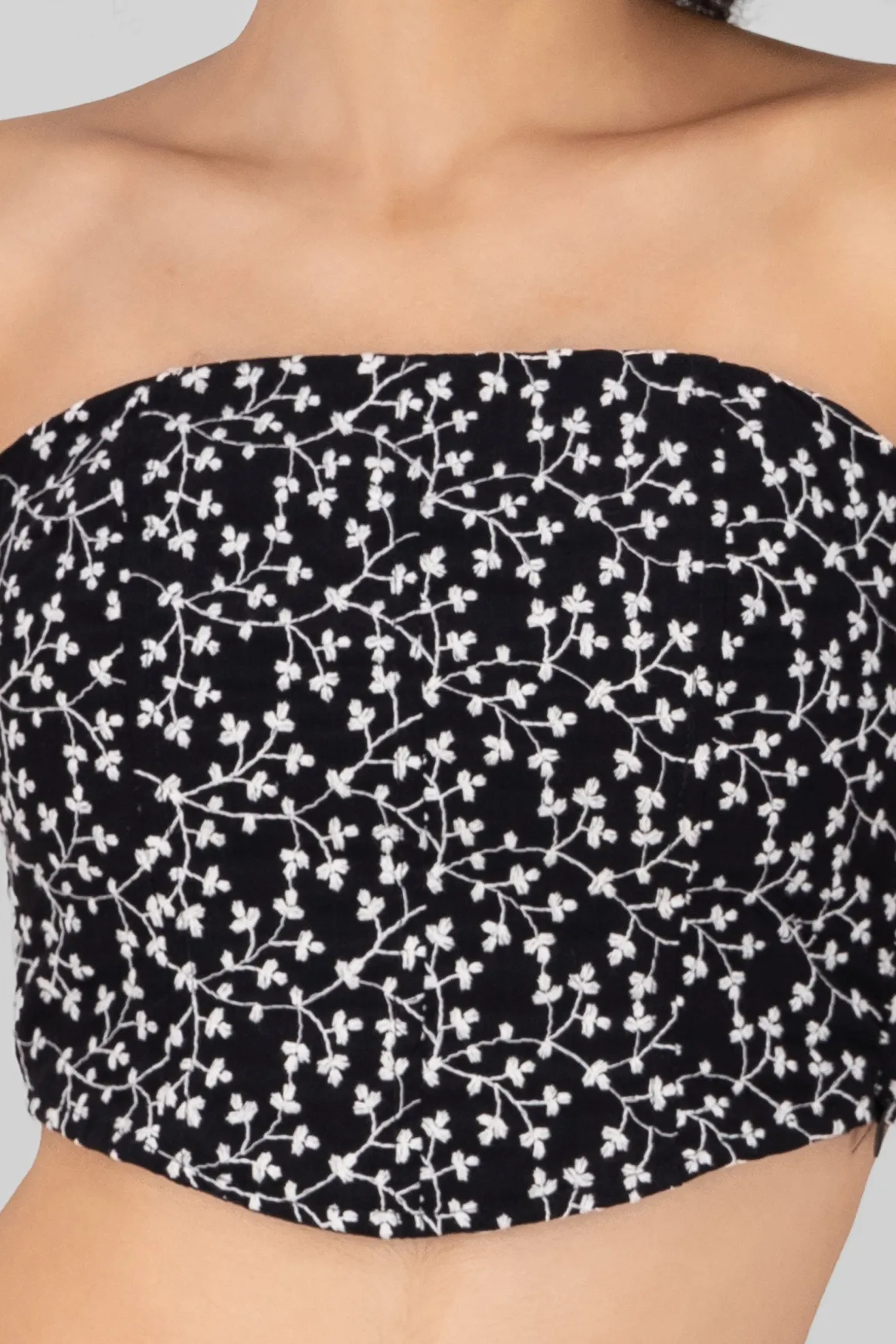 Este top strapless es una pieza que destaca por su sencillez y encanto. Con un diseño sin tirantes y un ajuste perfecto, es ideal para mostrar los hombros. El detalle de flores bordadas le añade un toque romántico y delicado, perfecto para un look veraniego. Puedes combinarlo con una falda o pantalones de cintura alta para un outfit fresco y estilizado. Es una prenda versátil que puedes usar en diversas ocasiones, desde una salida casual hasta una cita especial.