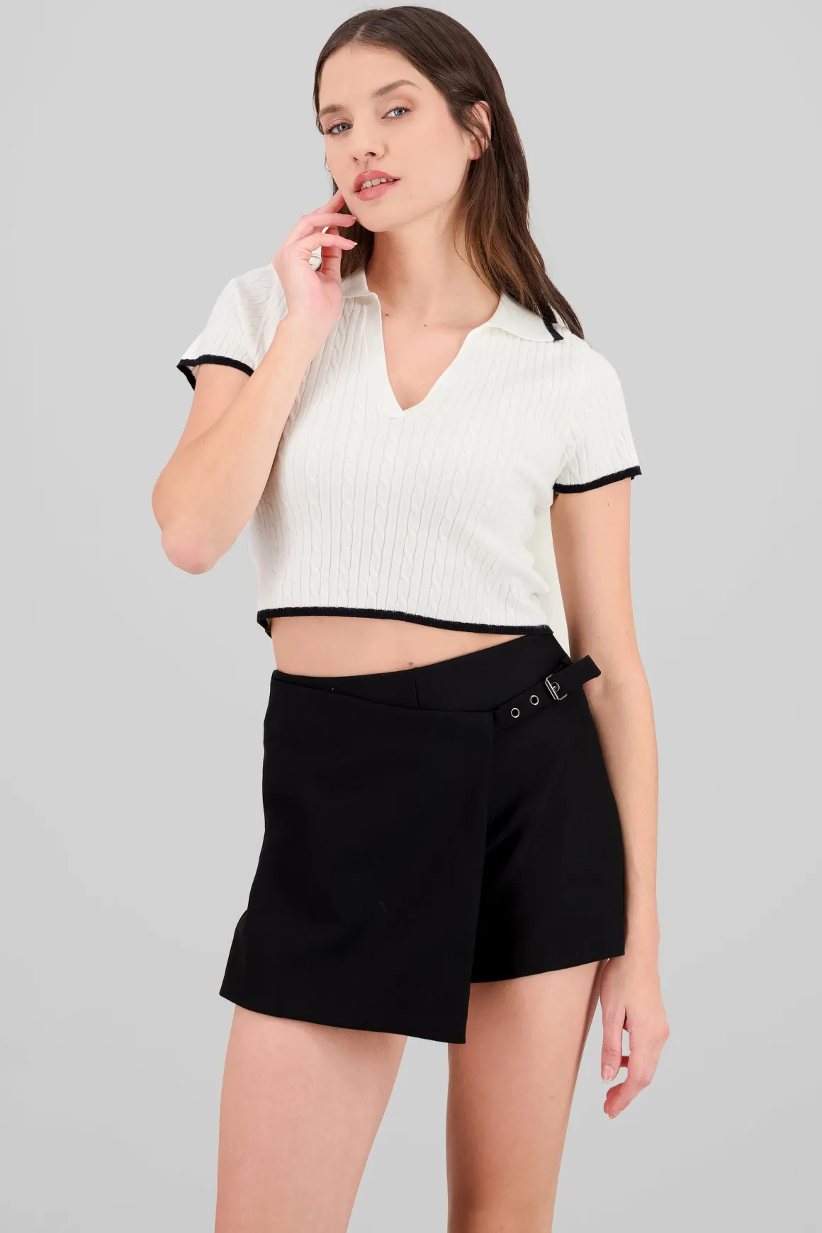 ¡Atrévete a destacar con este top de manga corta que combina estilo y diversión! Perfecto para cualquier ocasión, su diseño con contraste es ideal para quienes buscan un toque único en su atuendo diario.
