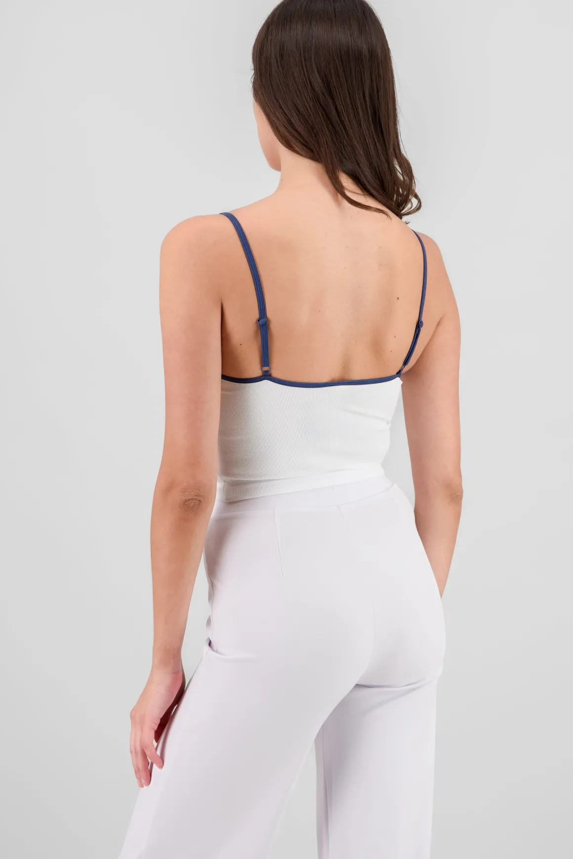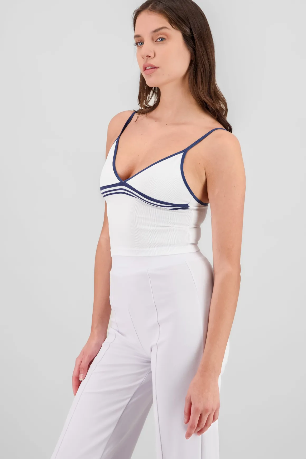 Este top es la elección perfecta para quienes buscan un toque especial en su guardarropa. Con un diseño que destaca por sus tirantes de contraste, cada detalle está pensado para aportar un estilo único.