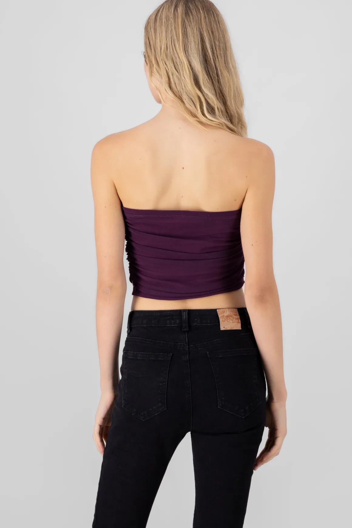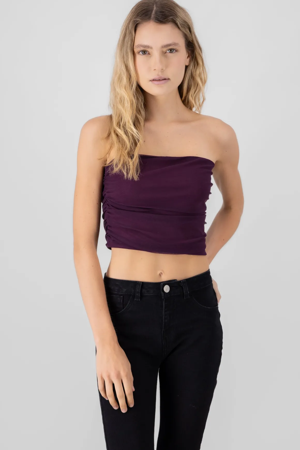 Dale un toque atrevido a tu look con este top mesh de estilo tubo. Su diseño drapeado lo convierte en una prenda única y moderna.