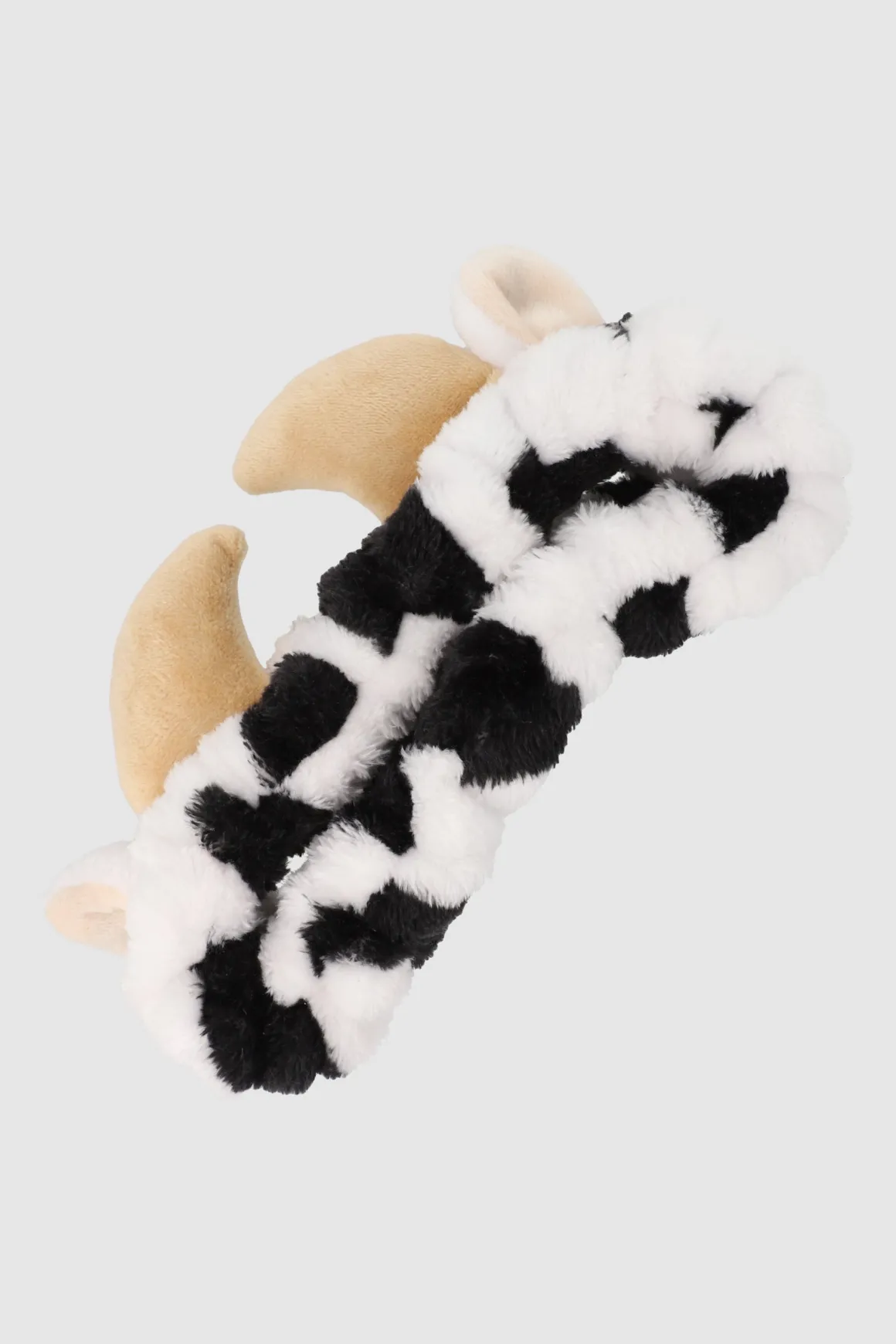 Luce súper cute con esta valerina de textura fluffy. El adorable diseño de vaca con cuernos y orejas sobresalientes le da un toque divertido, mientras que el elástico en los bordes asegura un ajuste cómodo.