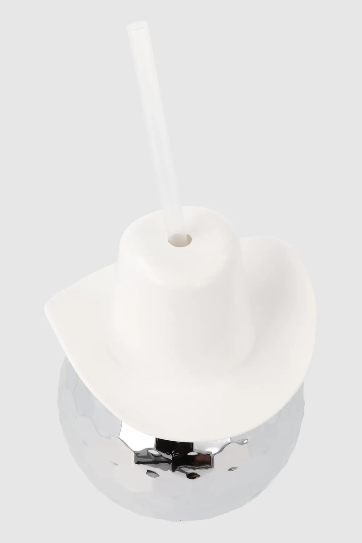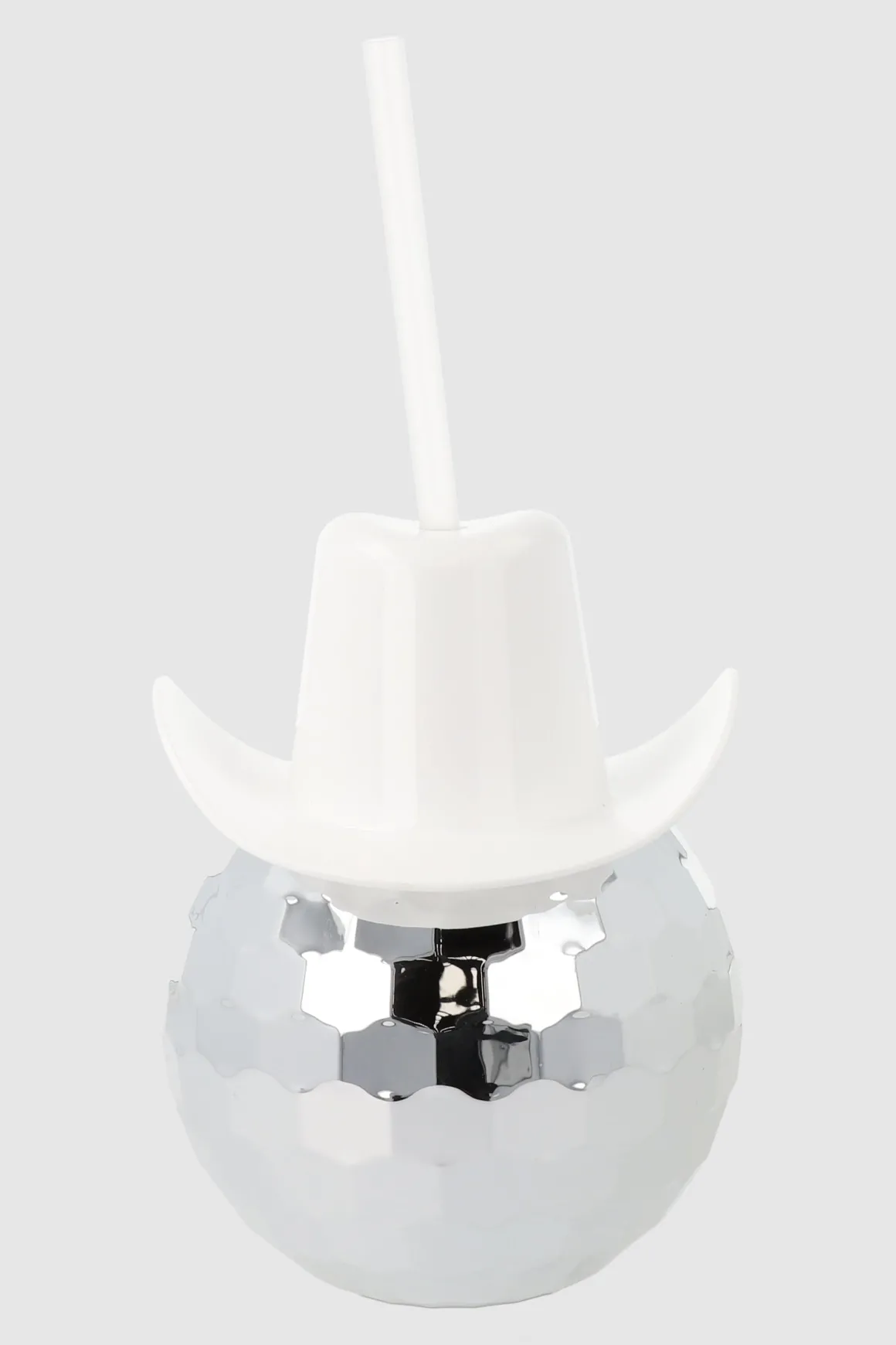 Vaso con diseño de bola disco, tapa de sombrero vaquero y popote. Capacidad: 600 ml. No apto para uso en microondas.
