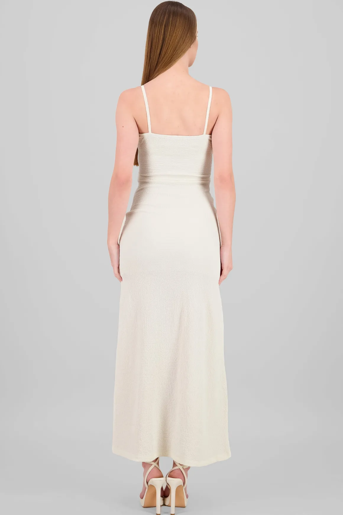 Descubre la esencia de la versatilidad con este vestido maxi que se adapta a cualquier ocasión. Su textura única añade un toque especial, convirtiéndolo en una pieza imprescindible en tu guardarropa.