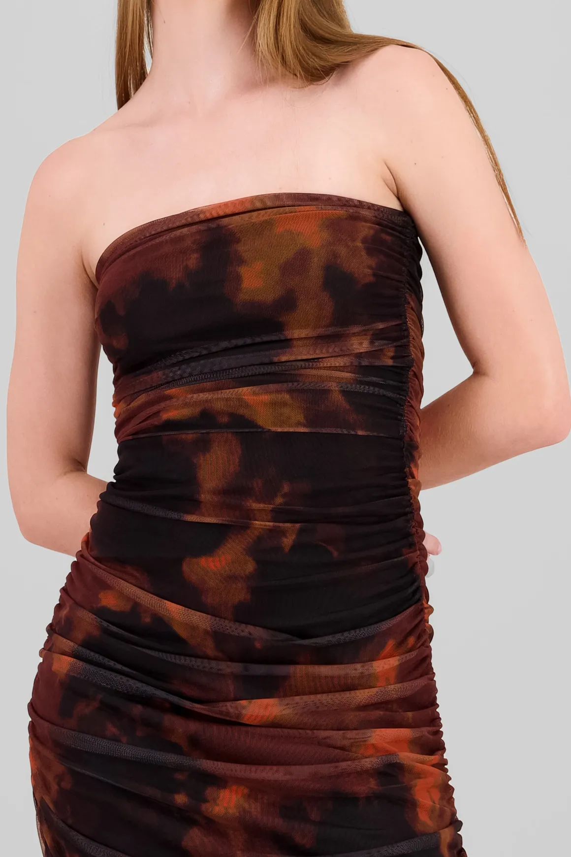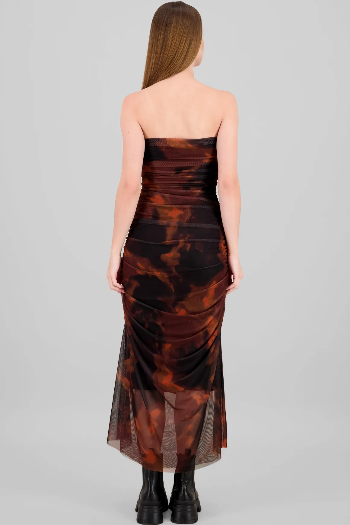 - Diseño strappless que resalta los hombros.