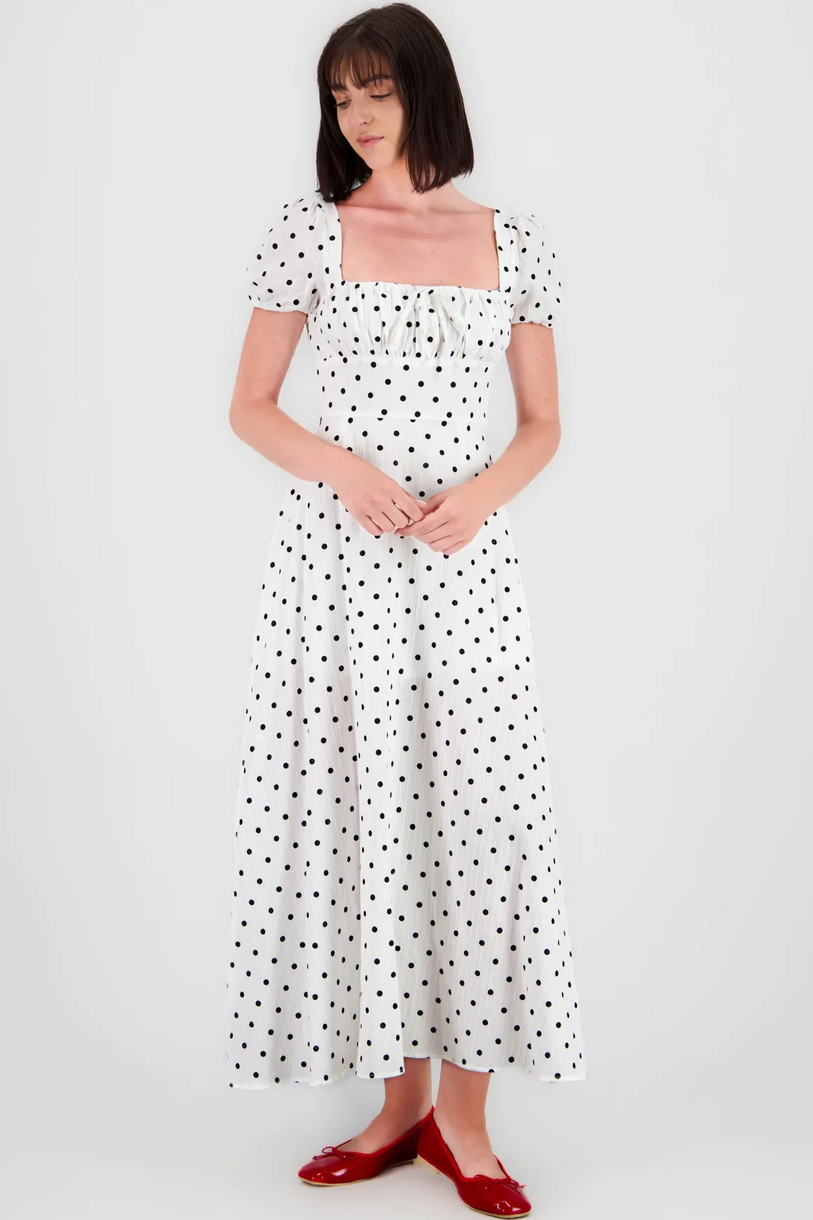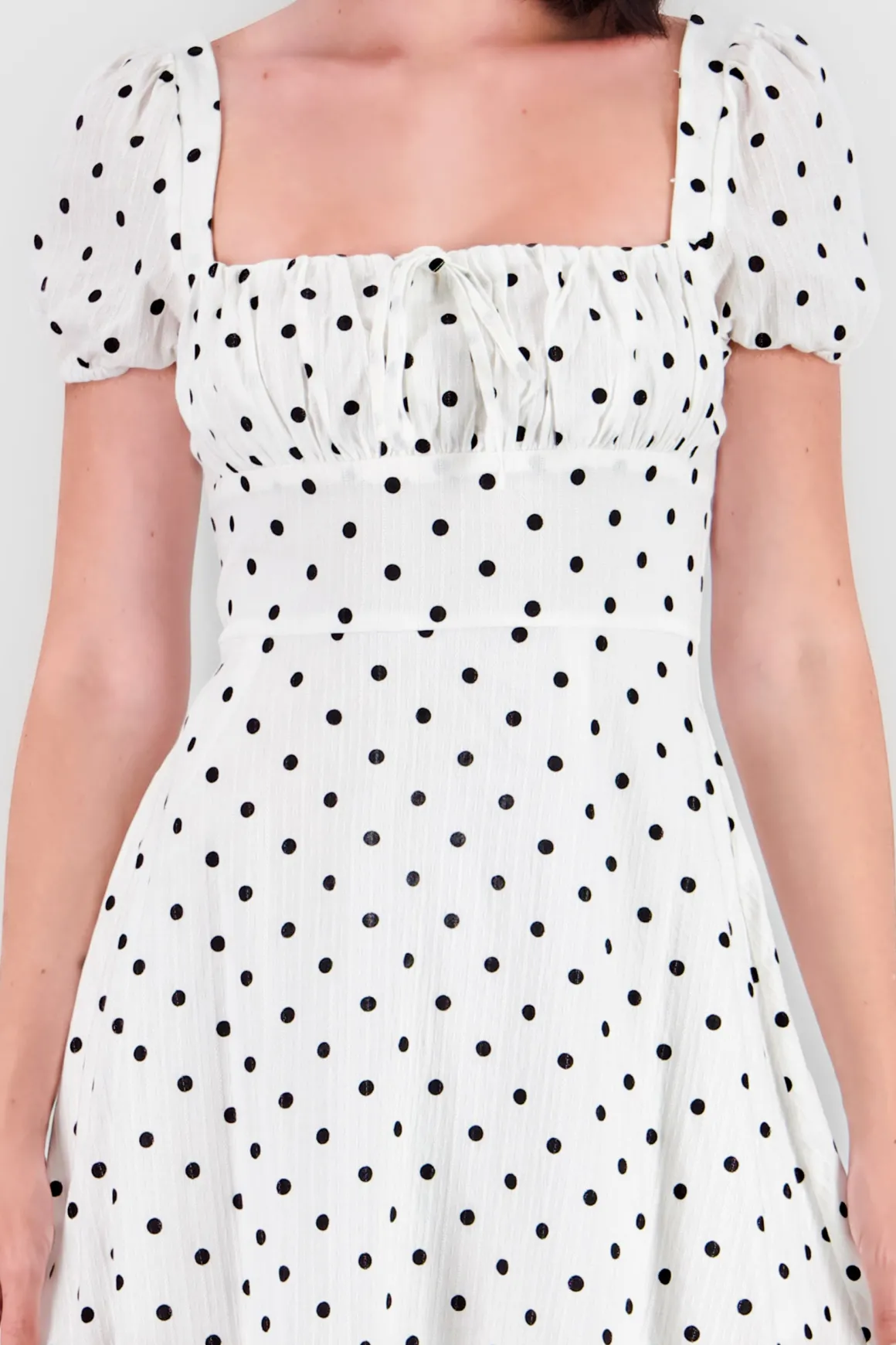 ¡Atrévete a destacar con un toque retro! Este vestido midi estampado polka es la elección perfecta para quienes buscan un estilo atemporal. Con su diseño encantador, cada detalle cuenta para hacer de tu outfit algo especial.