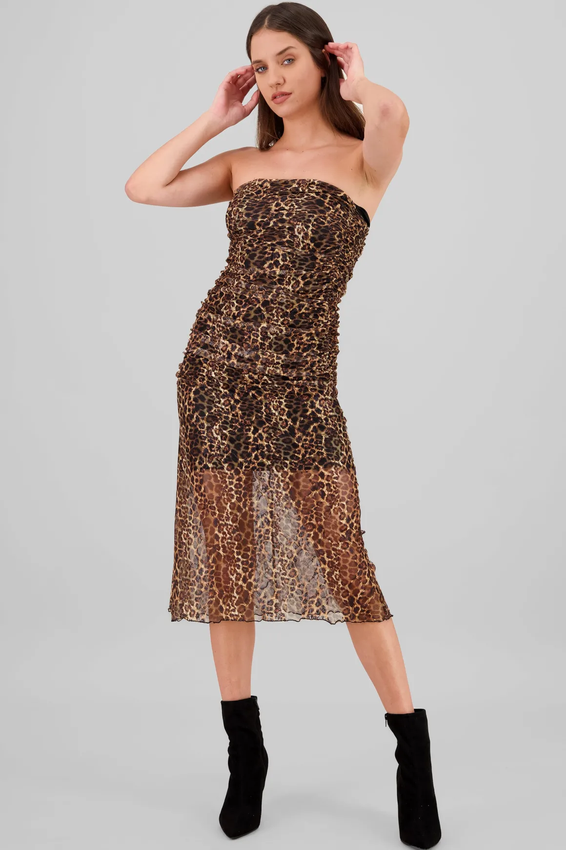- Diseño midi con estampado animal print.