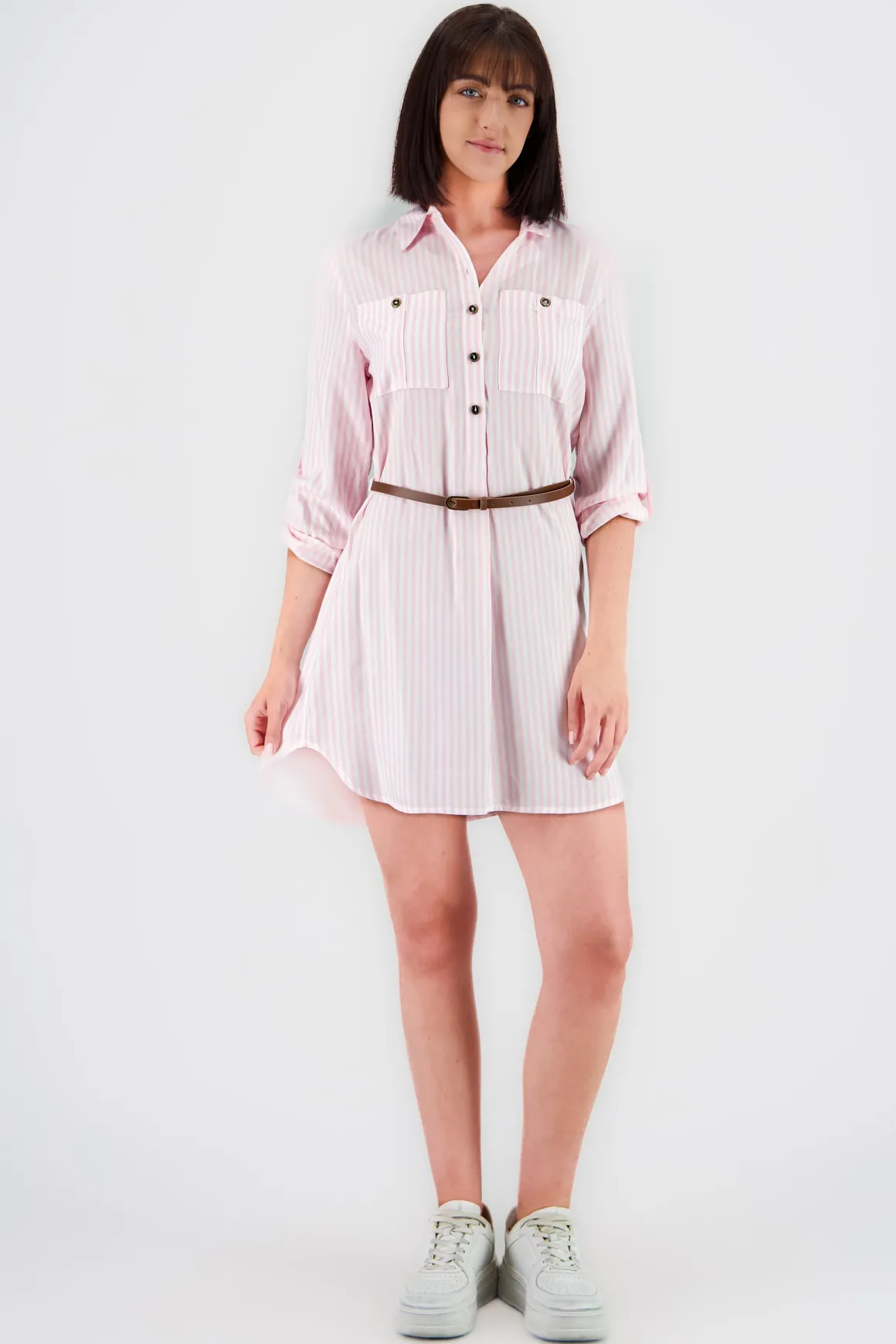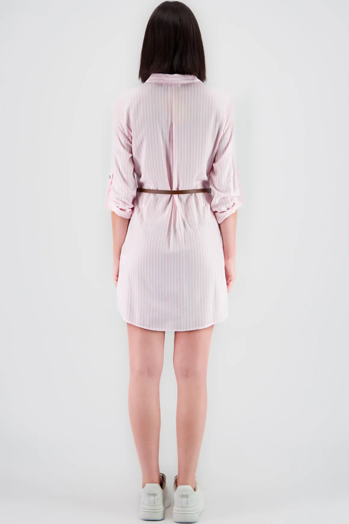 Destaca con nuestro vestido mini camisero, diseñado con un cuello con solapa y botones frontales, este vestido de manga larga ofrece un estilo clásico y atemporal. Sus bolsas delanteras y cinturones lisos agregan un toque de funcionalidad y estilo, mientras que su bajo brinda amplia comodidad y libertad de movimiento. Ya sea para una salida informal o una ocasión especial, este vestido es perfecto para llevar tu estilo al siguiente nivel.