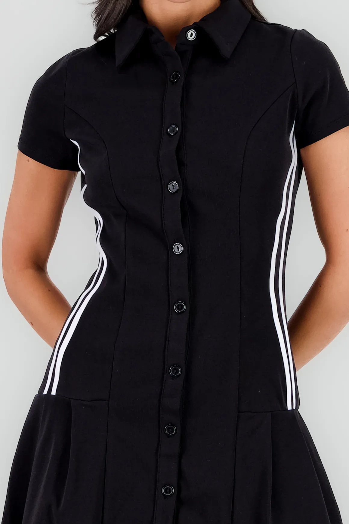 ¡Prepárate para destacar en cualquier ocasión con este vestido! Su diseño de mini falda tableada y cuello polo le da un toque juvenil y desenfadado, perfecto para lucir en un día casual o una salida con amigas.
