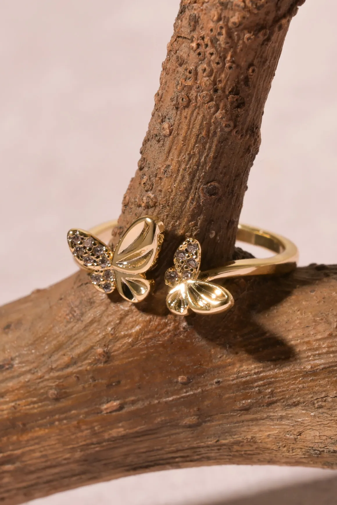 Este anillo con mariposas en vuelo simboliza ligereza y brillo, ideal para quienes buscan una joya llena de gracia.