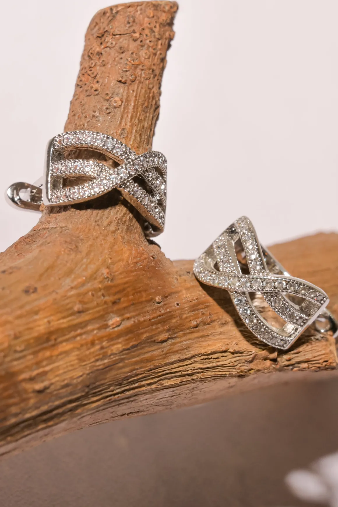 - Diseño trenzado decorado con brillantes incrustados.