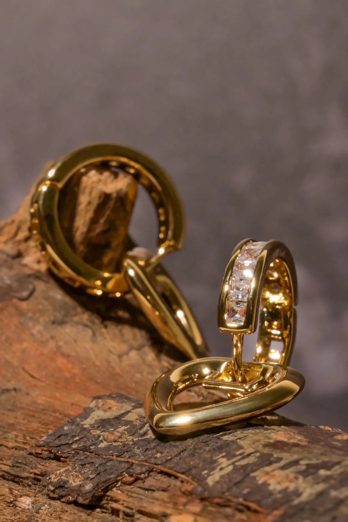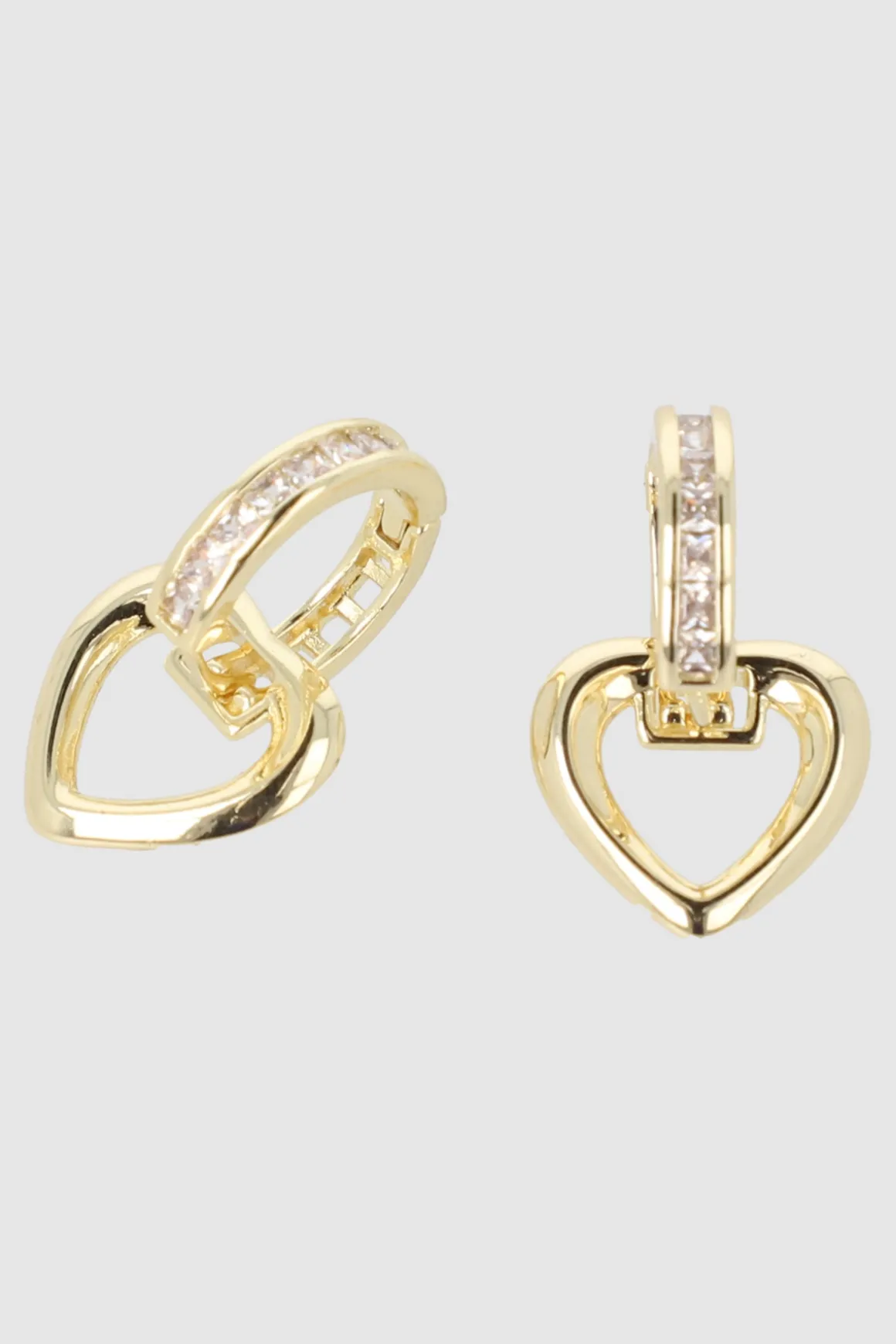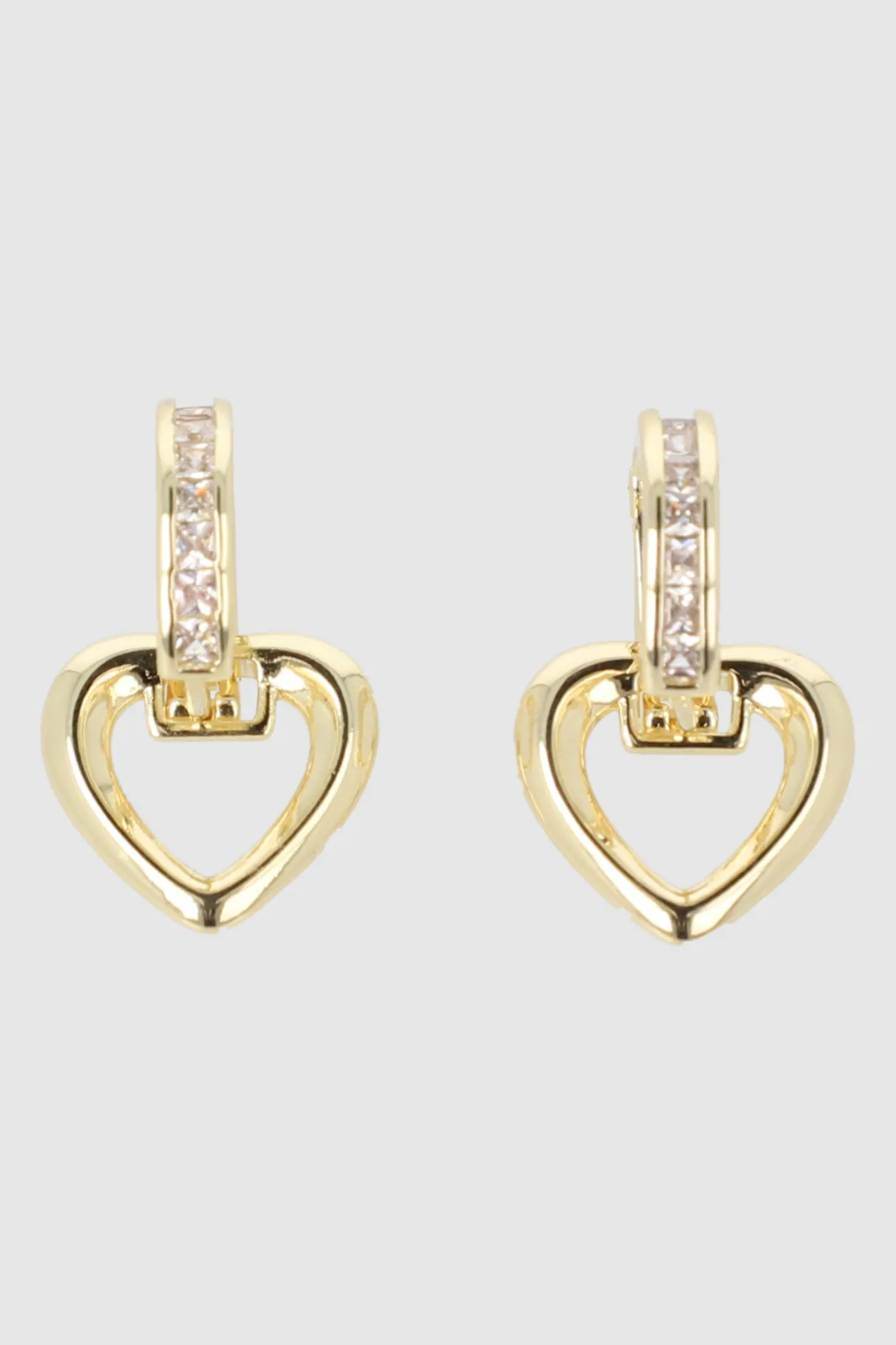 - Corazones colgantes adornados con zirconias y una hilera de cristales deslumbrantes.