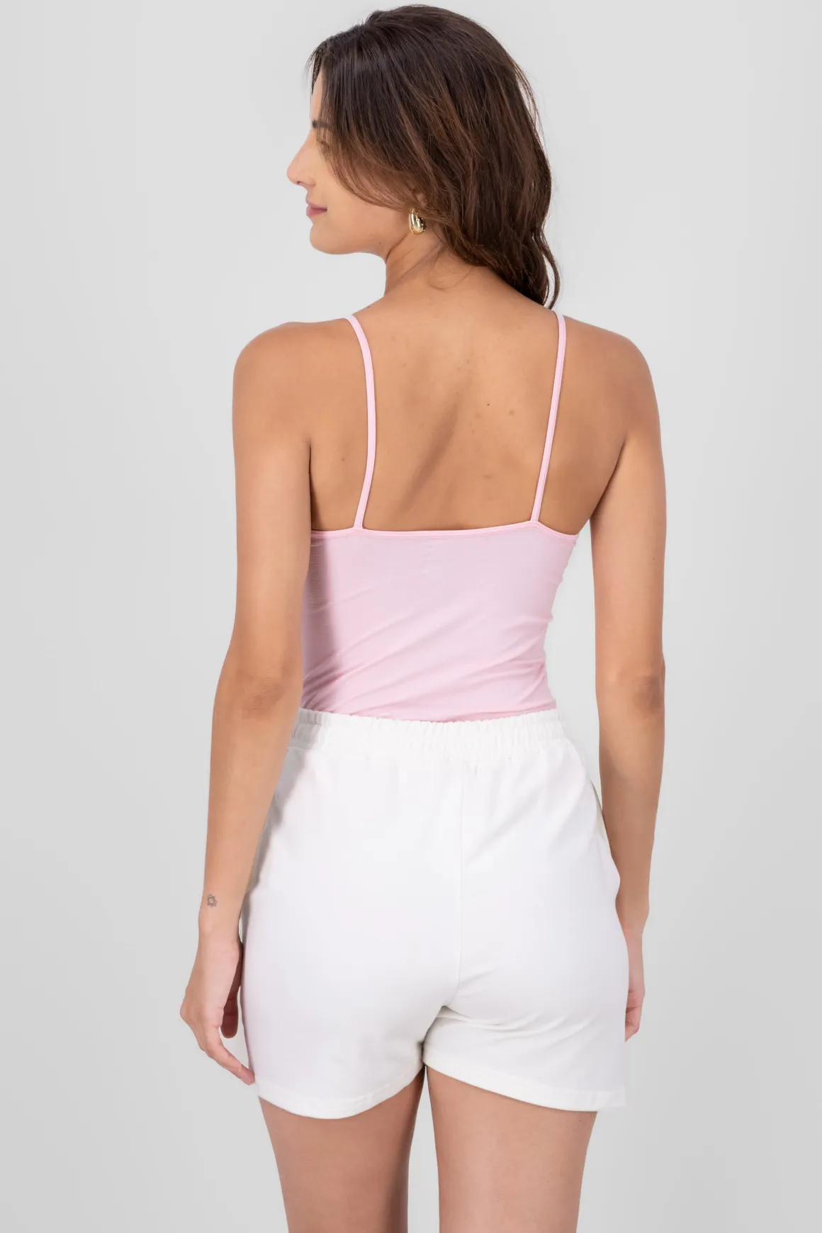 Añade un toque fresco y versátil a tu colección con este top liso de tirantes delgados. Su escote en V resalta tu look con un toque chic, perfecto para cualquier ocasión, desde una salida casual hasta una fiesta con amigas. Este top se convierte en tu aliado ideal para combinar con faldas, jeans o shorts, creando outfits únicos y a la moda. ¡Haz que tu estilo destaque y marca tendencia con este básico imprescindible!