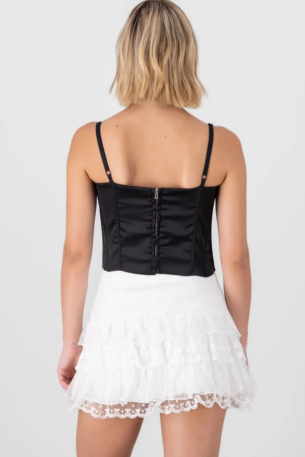 Una blusa tipo corset de satin que te hará sentir moderna y femenina. Las varillas proporcionan estructura, mientras que los tirantes delgados añaden un toque delicado. Perfecta para combinar con faldas o pantalones ajustados y armar un look que puede ir desde lo casual hasta lo chic. Ya sea para una salida nocturna o un evento especial, esta blusa corset se convertirá en tu aliada para destacar.