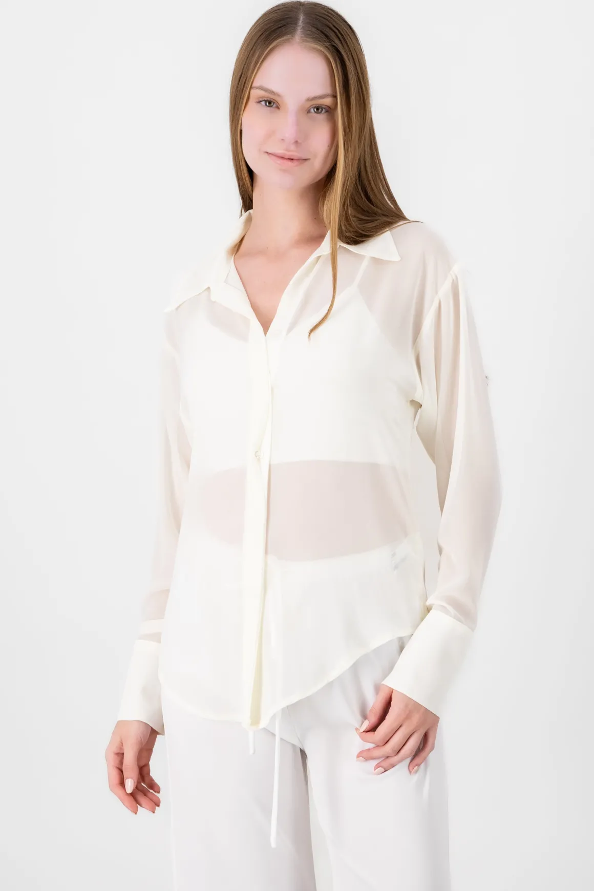 Esta blusa es una opción ligera y única que aporta un aire femenino y fluido a cualquier conjunto.