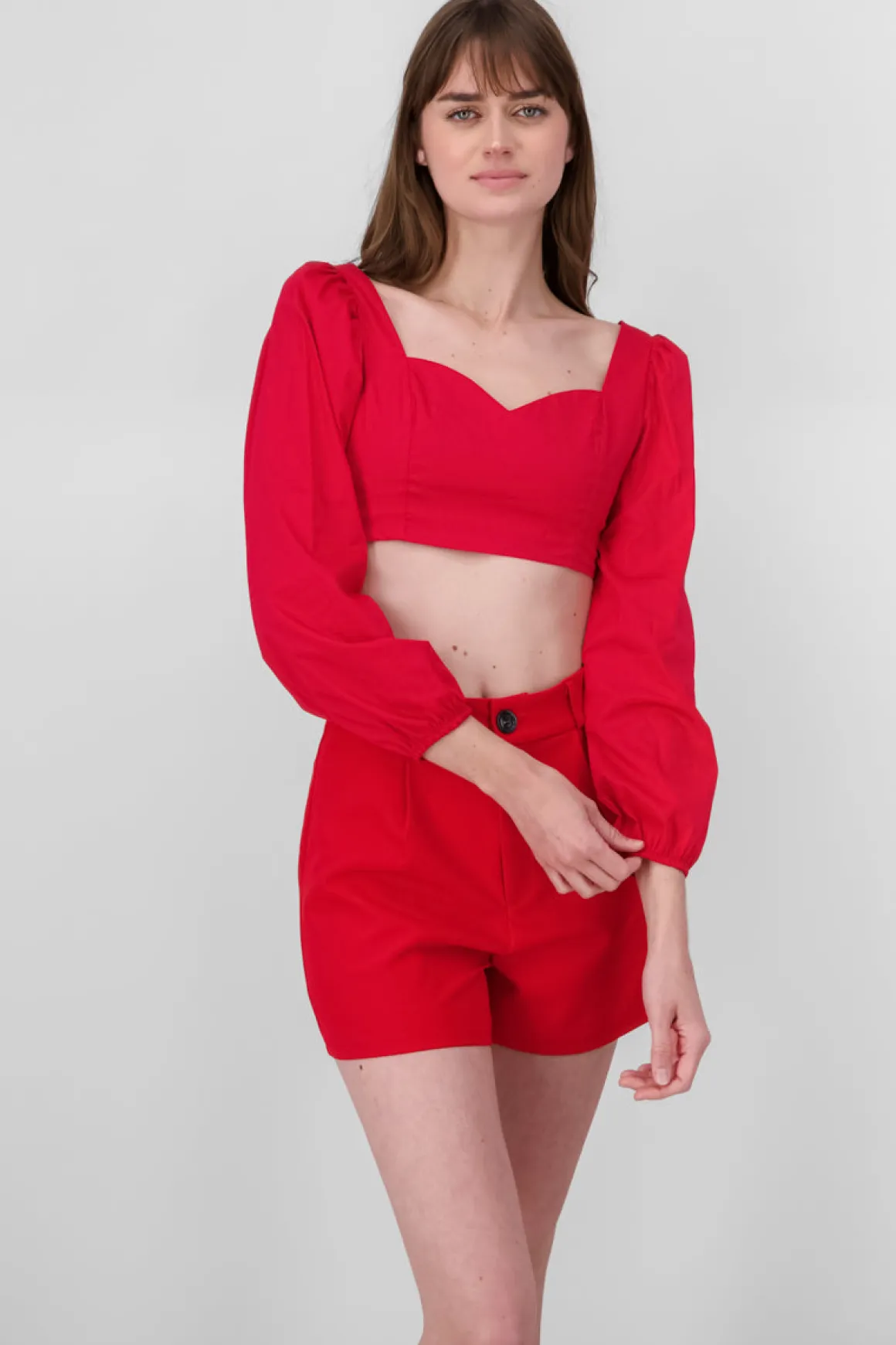 Blusa Manga Abullonada Escote Corazon