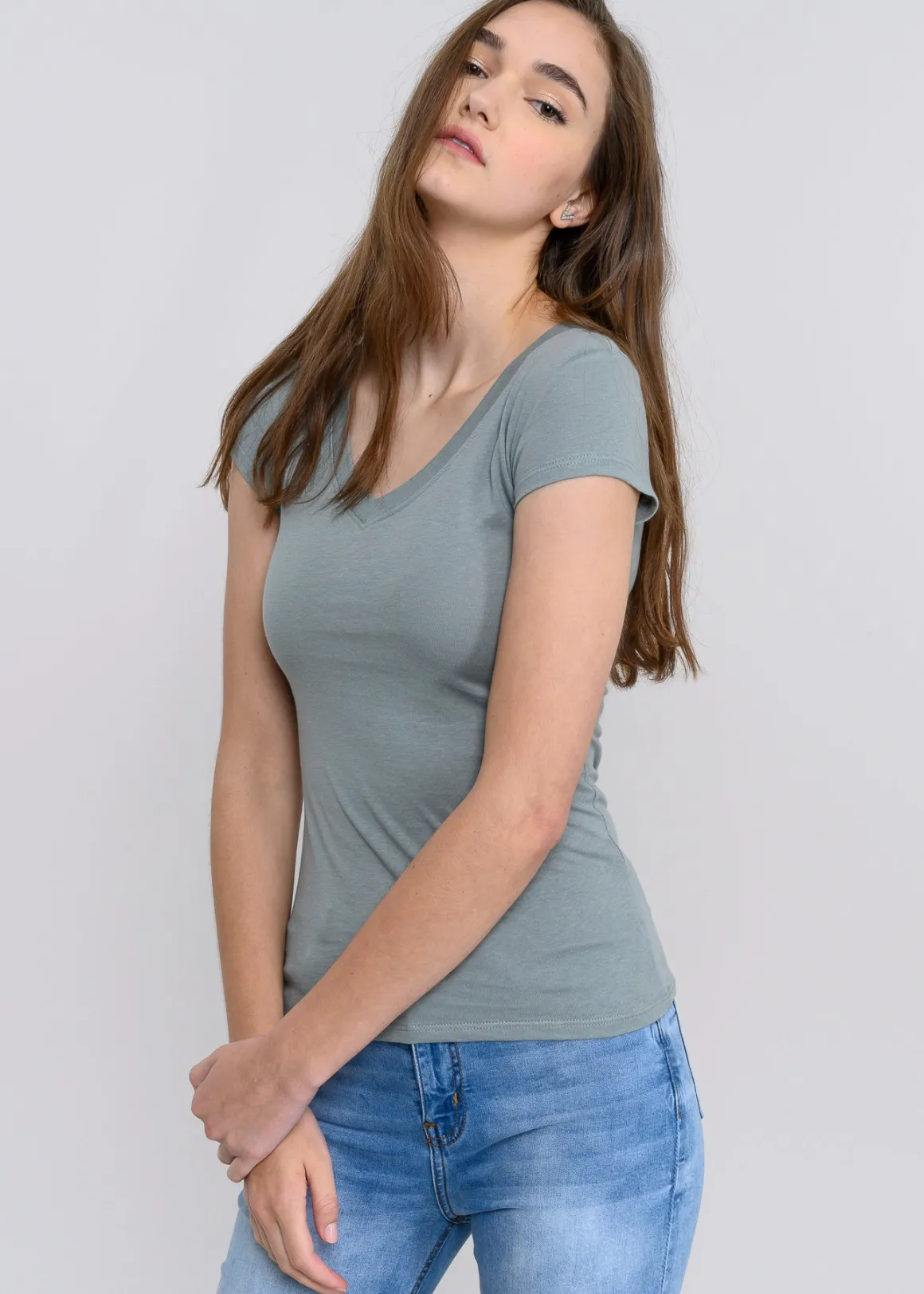 Blusa manga corta cuello v