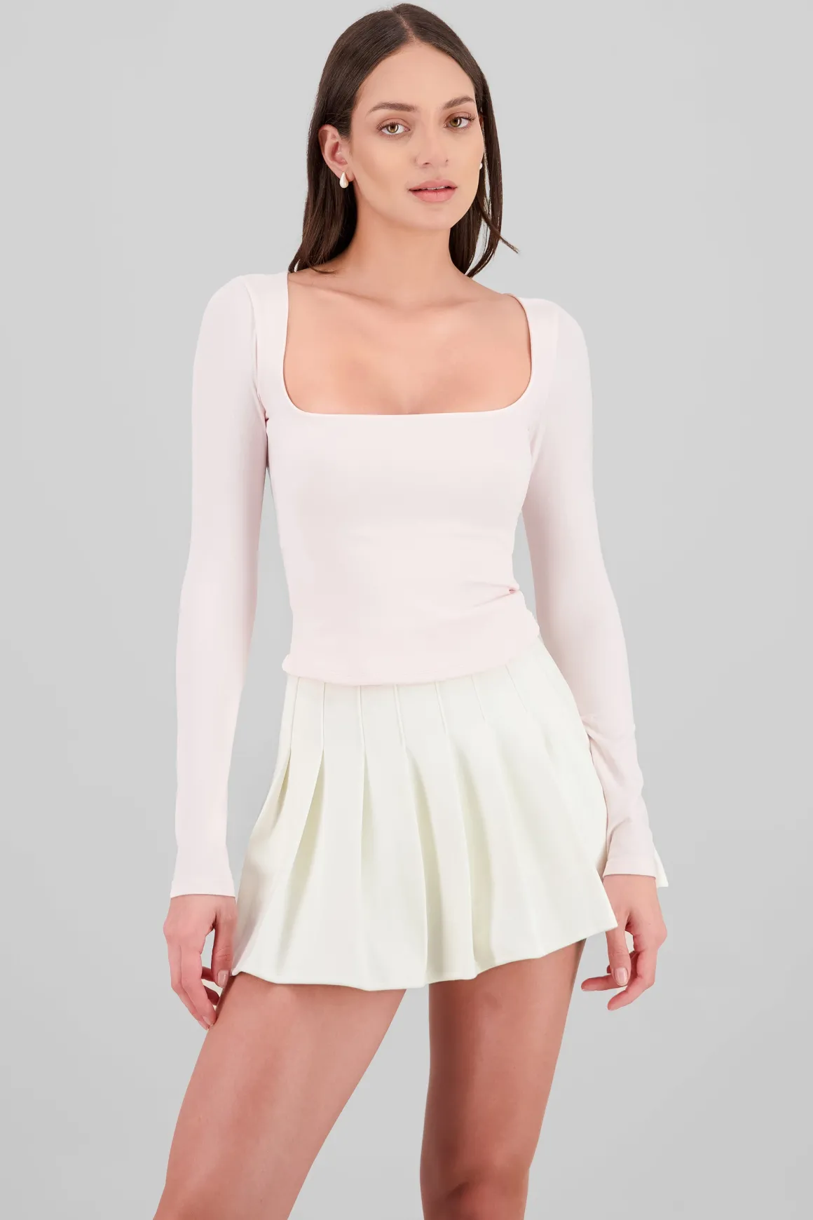 Esta blusa de manga larga con escote cuadrado es un must-have para cualquier ocasión. Su diseño atemporal y versátil te permitirá combinarla fácilmente con tus prendas favoritas.