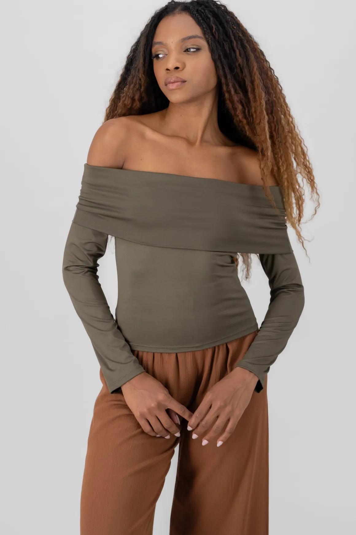 Esta blusa off shoulder es perfecta para quienes buscan un look femenino y relajado. Con mangas largas y un diseño que deja los hombros al descubierto, es ideal para crear un estilo delicado pero con mucha actitud.