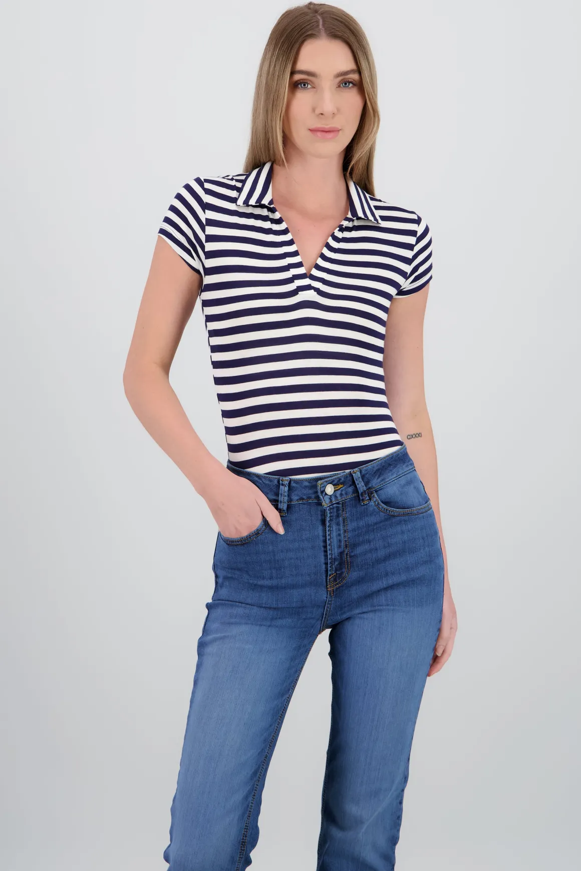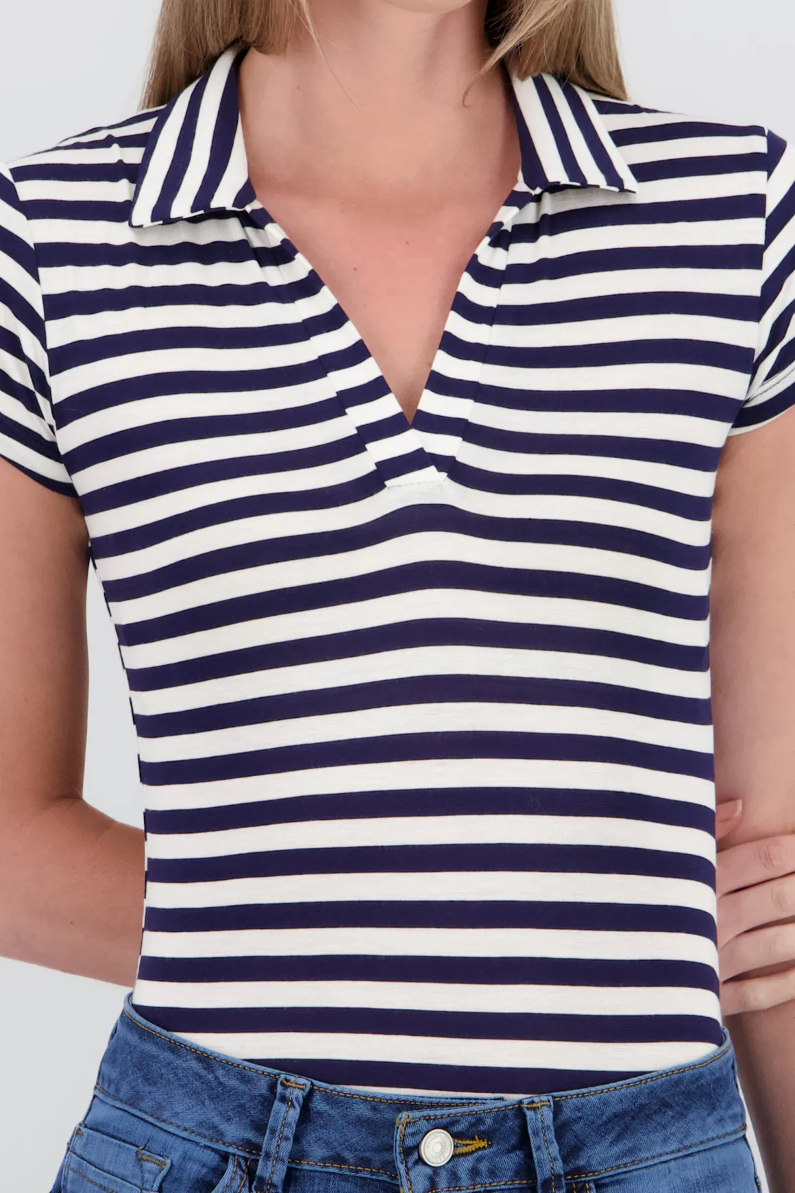 Este body es ideal para darle un toque único y cómodo a tu look. Con su diseño de manga corta y rayas, es perfecto para un look relajado pero con estilo. Combínalo con tus prendas favoritas y estarás lista para cualquier ocasión.