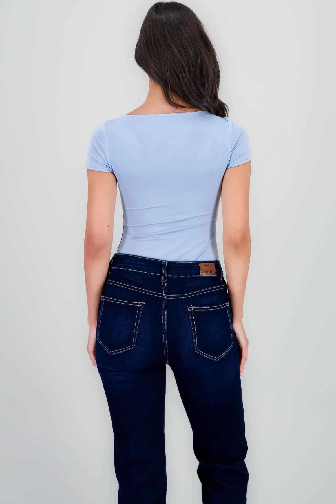 Un bodysuit básico con un toque especial. Con escote cuadrado y mangas cortas, esta pieza es súper versátil, perfecta para cualquier ocasión. Úsalo con jeans, faldas o shorts para un look casual, o añade accesorios para algo más formal. Su diseño ajustado y cómodo te acompañará todo el día, haciendo que te veas increíble.