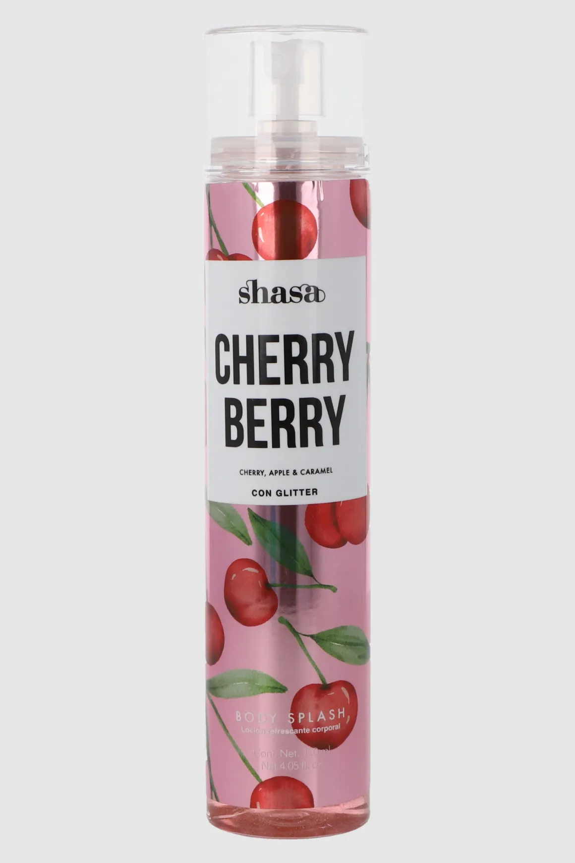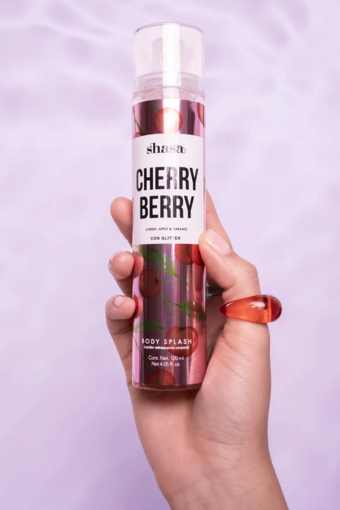 Disfruta del delicioso aroma con un toque de brillo con el Body Splash corporal Cherry Berry. Este producto, con un contenido de 120 ml, te brinda un efecto glitter sutil para resaltar tu belleza.