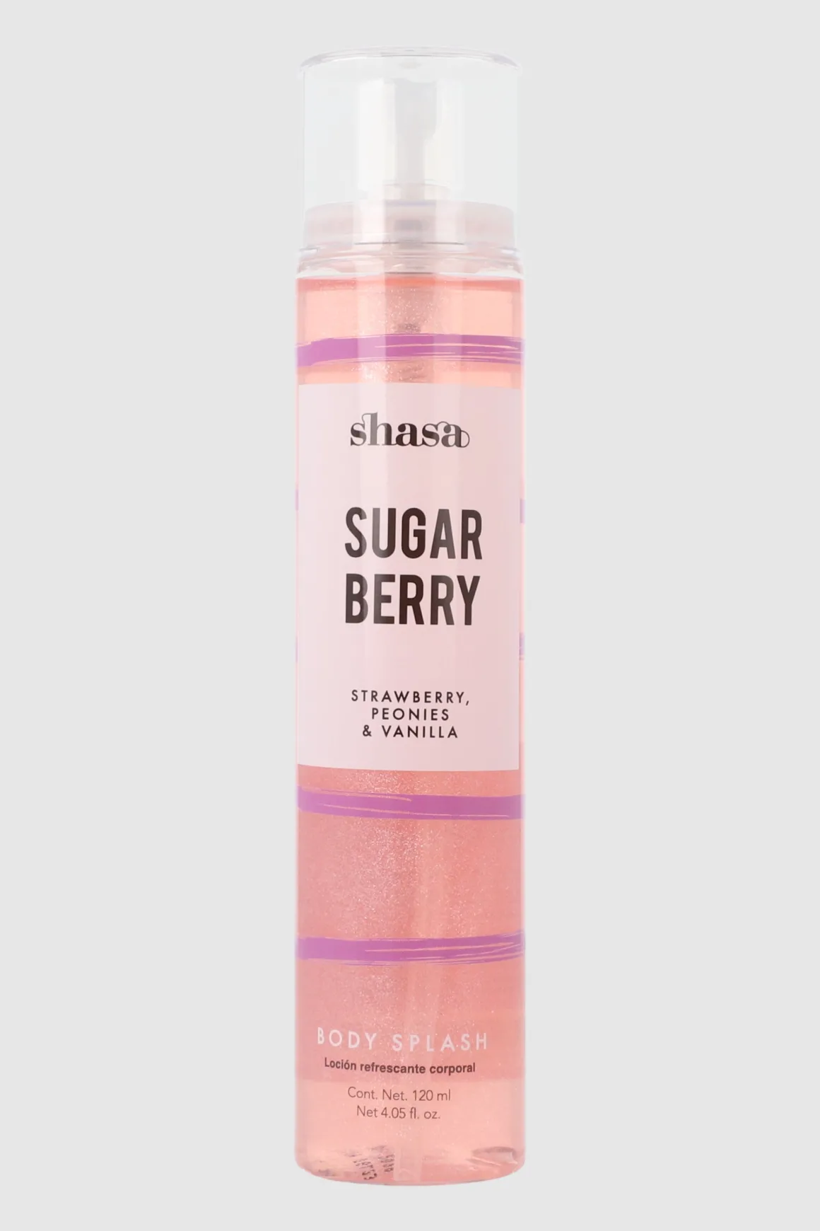 Refresca tu cuerpo con el body splash Sugar Berry. Con una cautivadora combinación de fresa, peonías y vainilla, este body splash dejará tu piel con un aroma dulce y refrescante. Además, su toque de glitter le brinda un brillo sutil a tu piel, agregando un toque de glamour a tu rutina diaria.