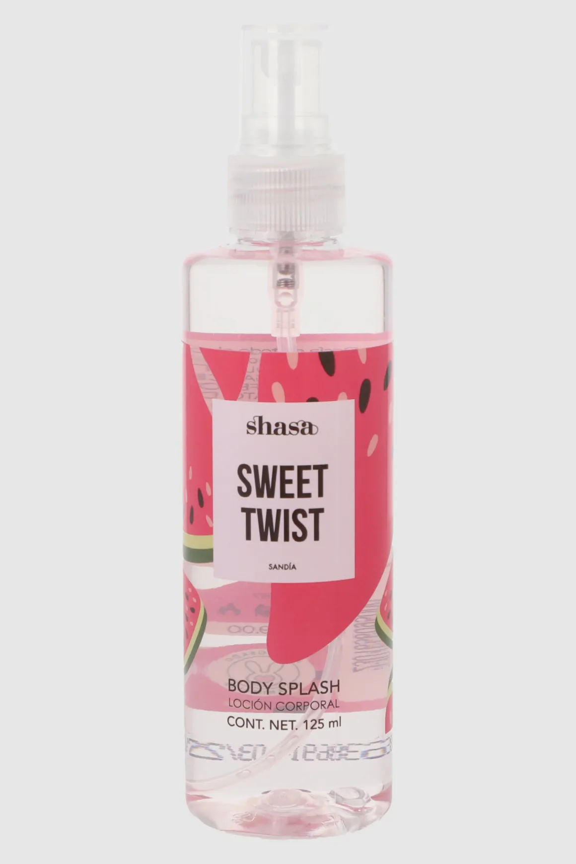 Disfruta de la frescura y dulzura de la sandía con nuestro Body Splash Sweet Twist. Con un contenido de 120 ml, este producto es perfecto para refrescar tu cuerpo durante el día. Además, puedes sentirte bien al saber que es libre de crueldad animal, para que puedas disfrutarlo con tranquilidad.