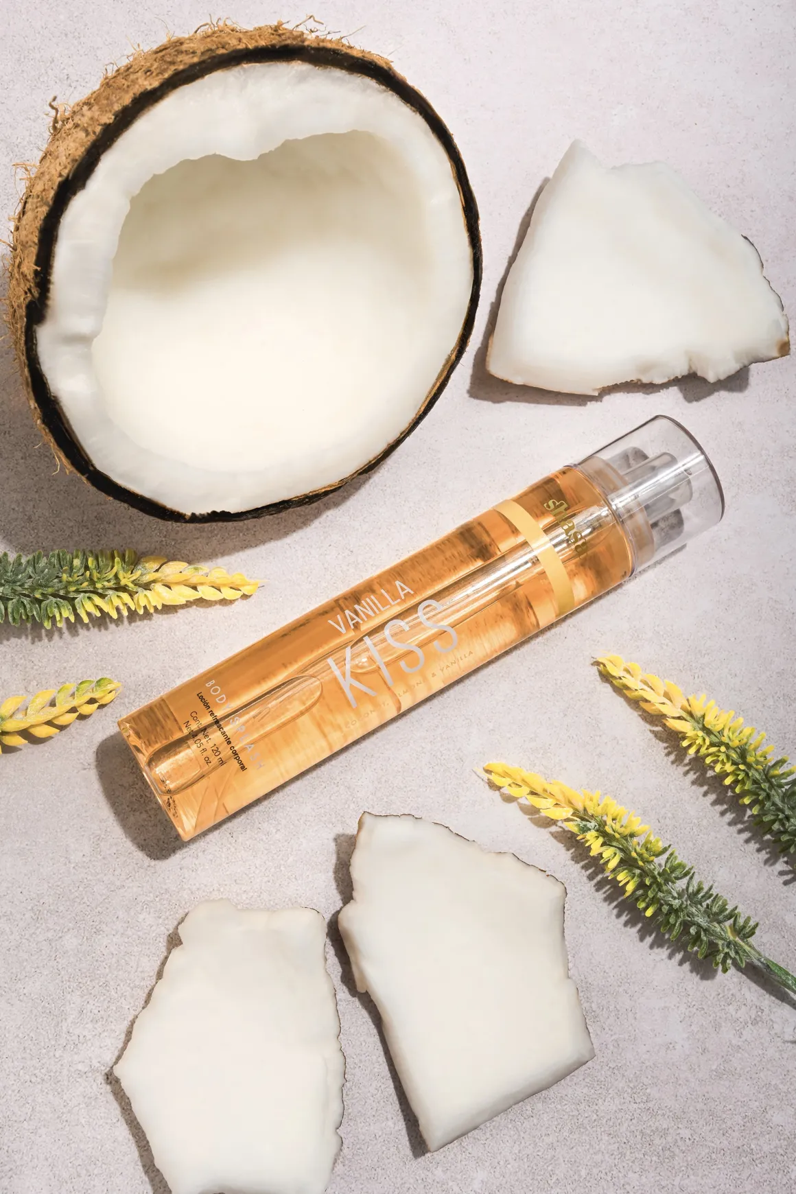 Refresca tu cuerpo con el body splash Vanilla Kiss. Disfruta de la exquisita combinación de coco, almendra y vainilla en cada aplicación.