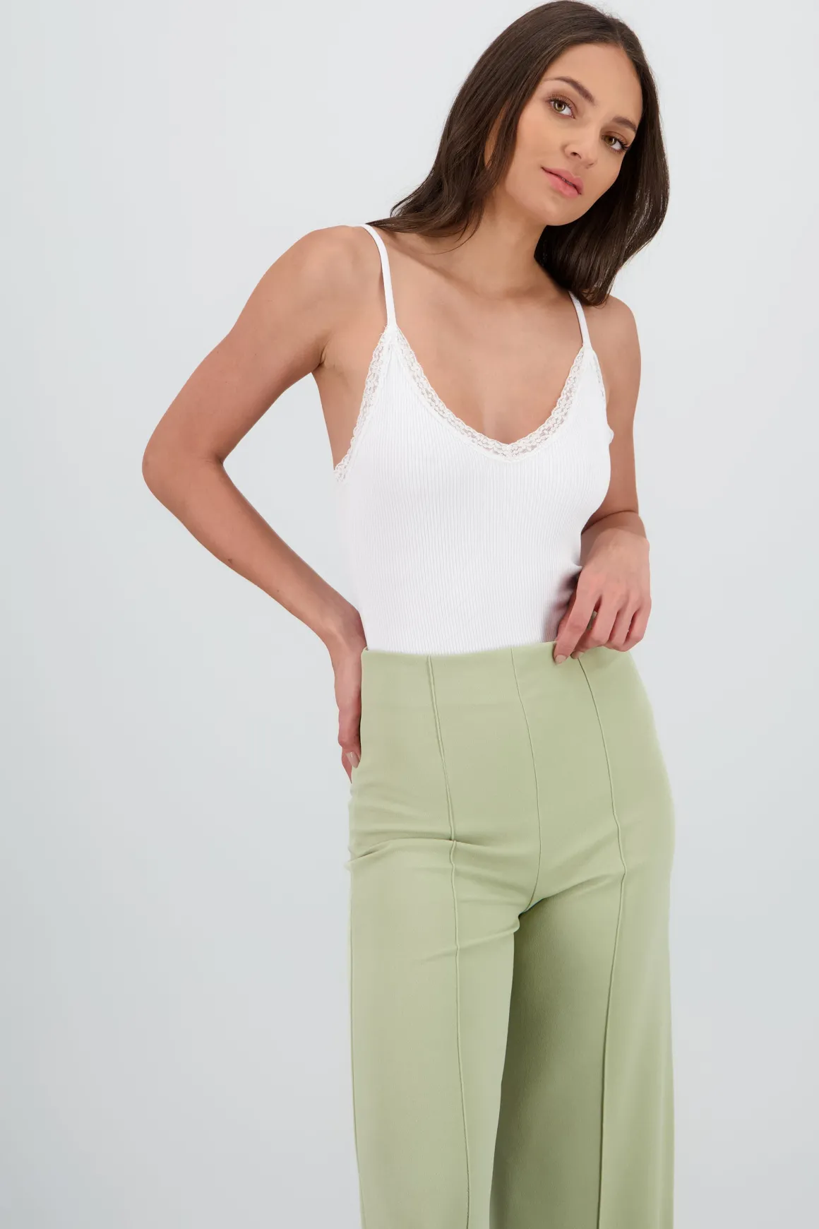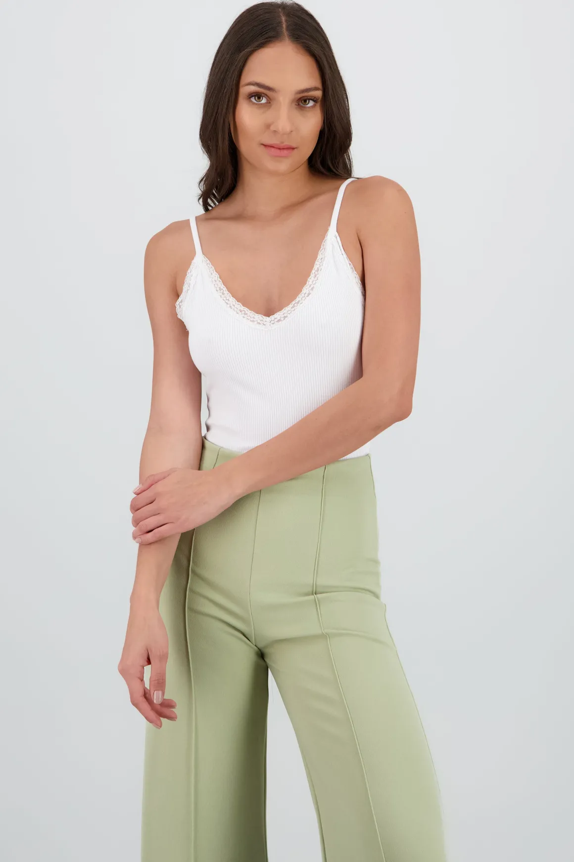 Este body es el aliado perfecto para tus looks más audaces y cómodos. Su diseño con tirantes y detalle de encaje le da un toque especial que lo convierte en una prenda versátil para cualquier ocasión.
