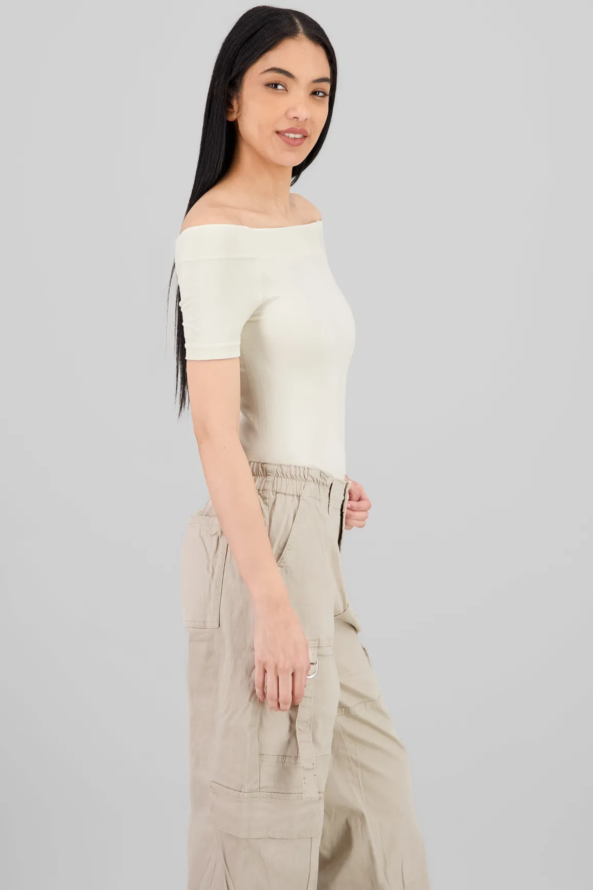 Este bodysuit con hombros descubiertos es la opción perfecta para resaltar tu estilo único. Ideal para cualquier ocasión, se adapta a tu figura y su manga corta le añade comodidad a tu outfit.