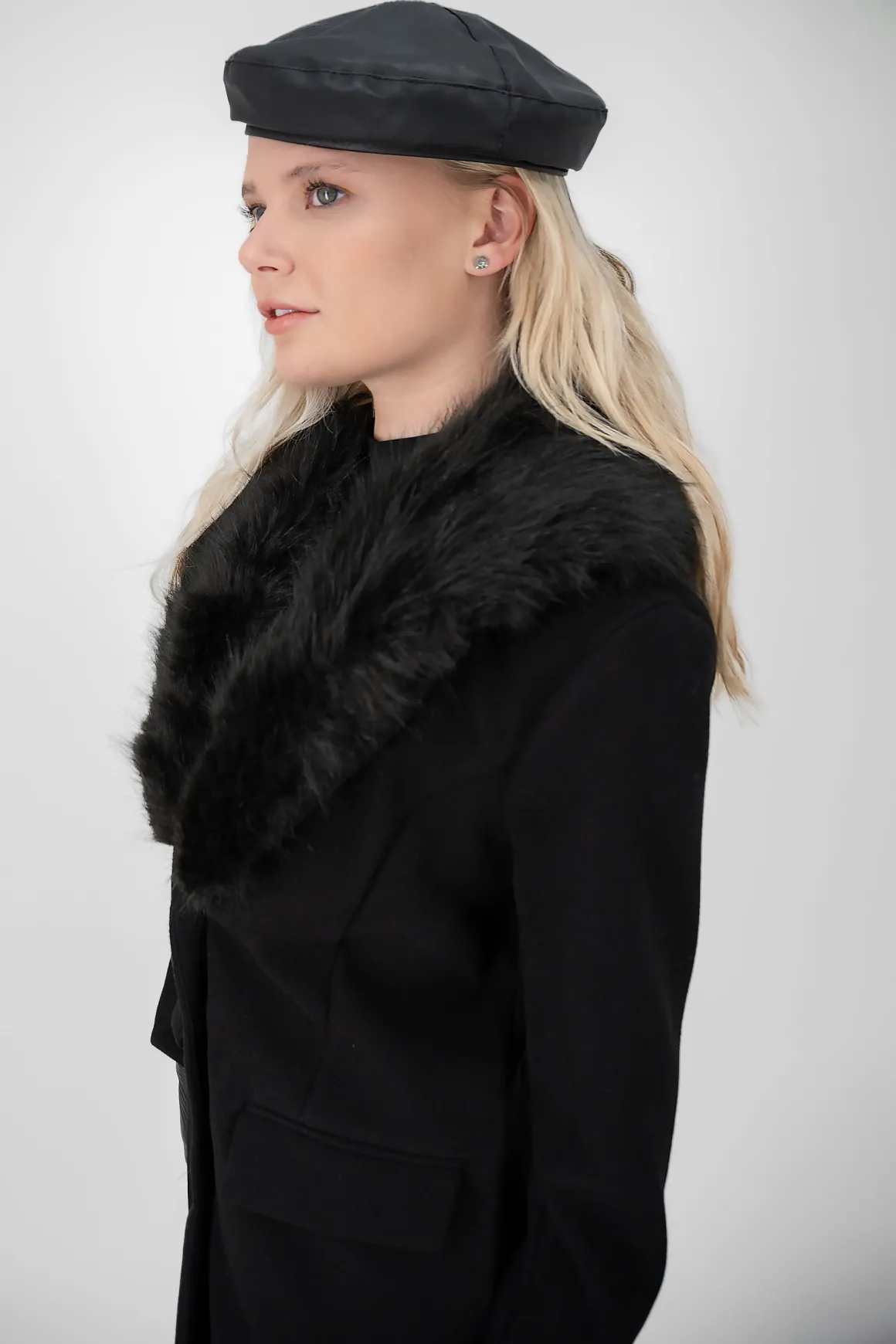 Boina de efecto piel con detalle de hebilla.