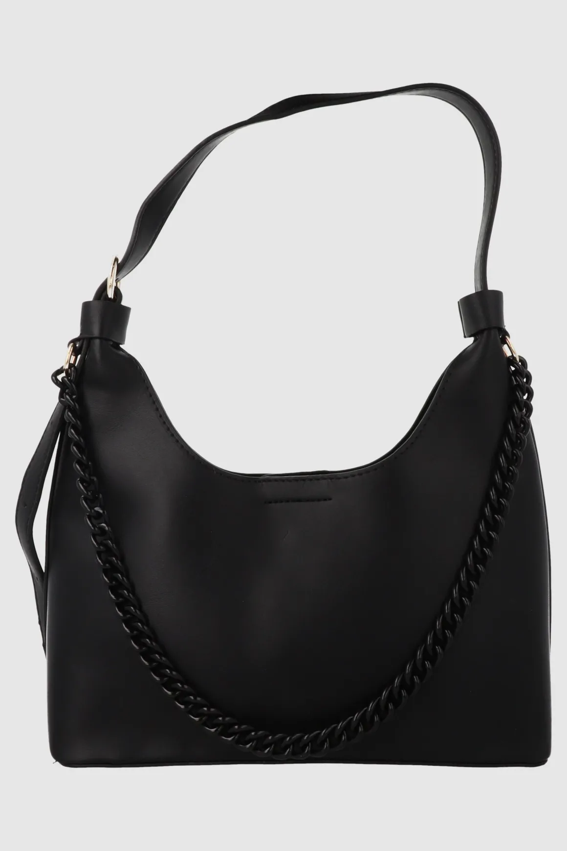 Esta bolsa baguette monocolor con cadena es el accesorio perfecto para añadir un toque de estilo a cualquier look. Su diseño compacto y elegante se combina con una cadena metálica que aporta un detalle moderno. Ideal para llevar lo esencial, su tamaño es perfecto para el día a día o una salida casual, manteniendo tus pertenencias seguras y accesibles.