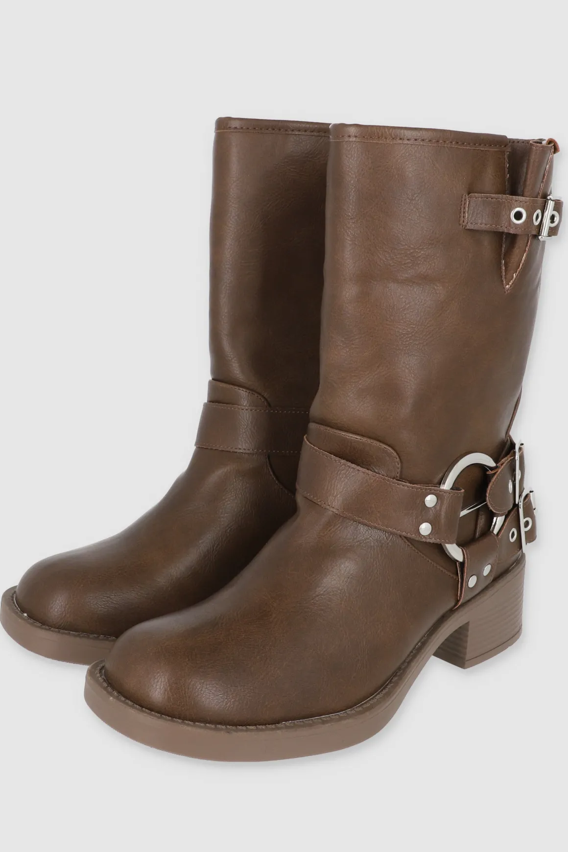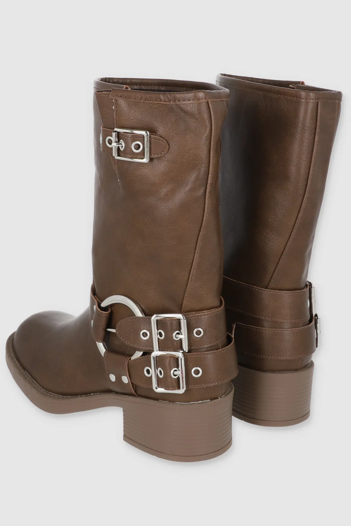 Estas botas moteras midi son el complemento perfecto para un look atrevido y lleno de carácter. No importa la ocasión, te acompañarán en cada aventura.