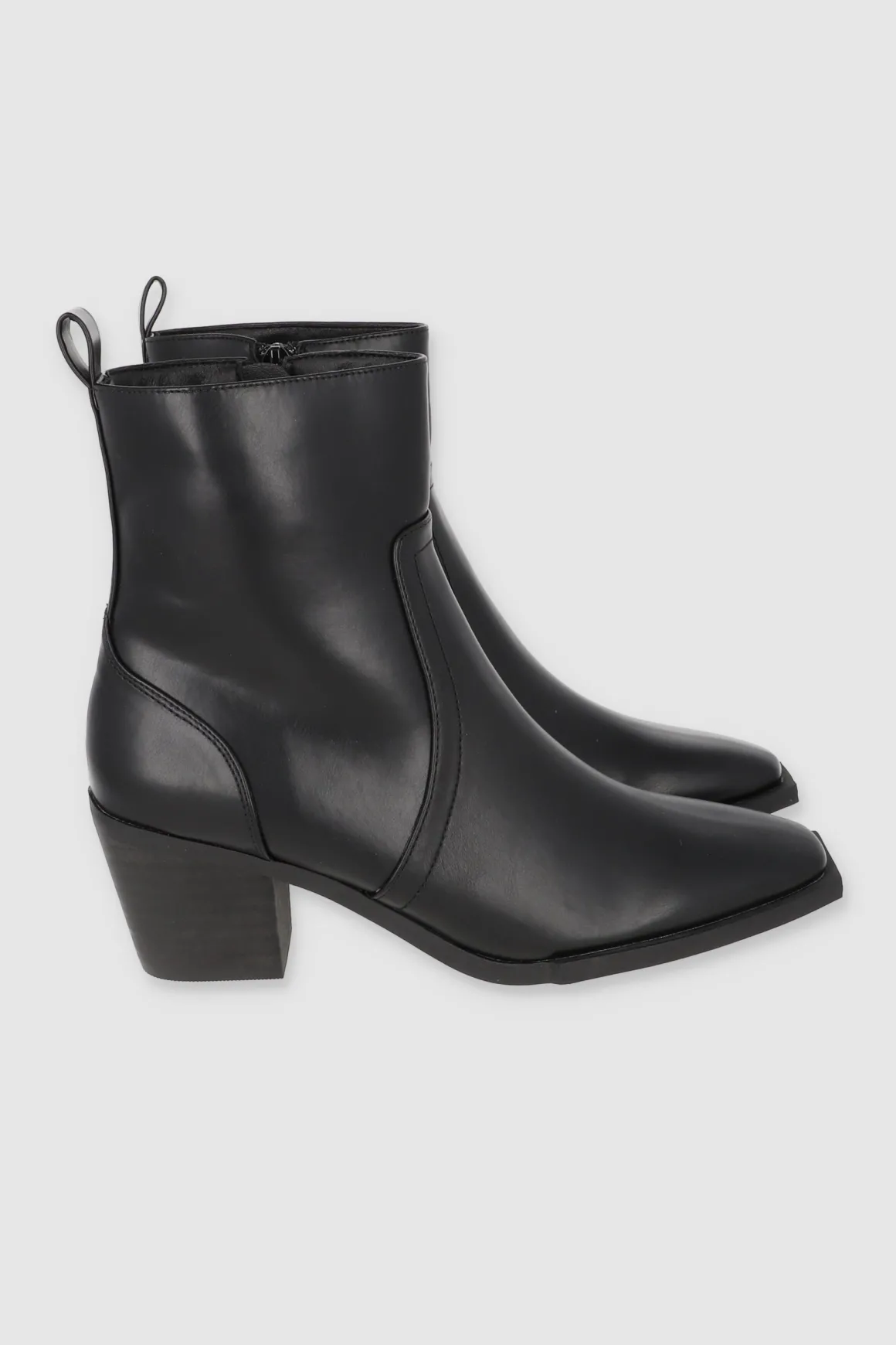Estos botines con punta cuadrada y tacón ancho bajo son el complemento perfecto para un look moderno y cómodo. La cremallera lateral interna hace que sean súper fáciles de poner y quitar.