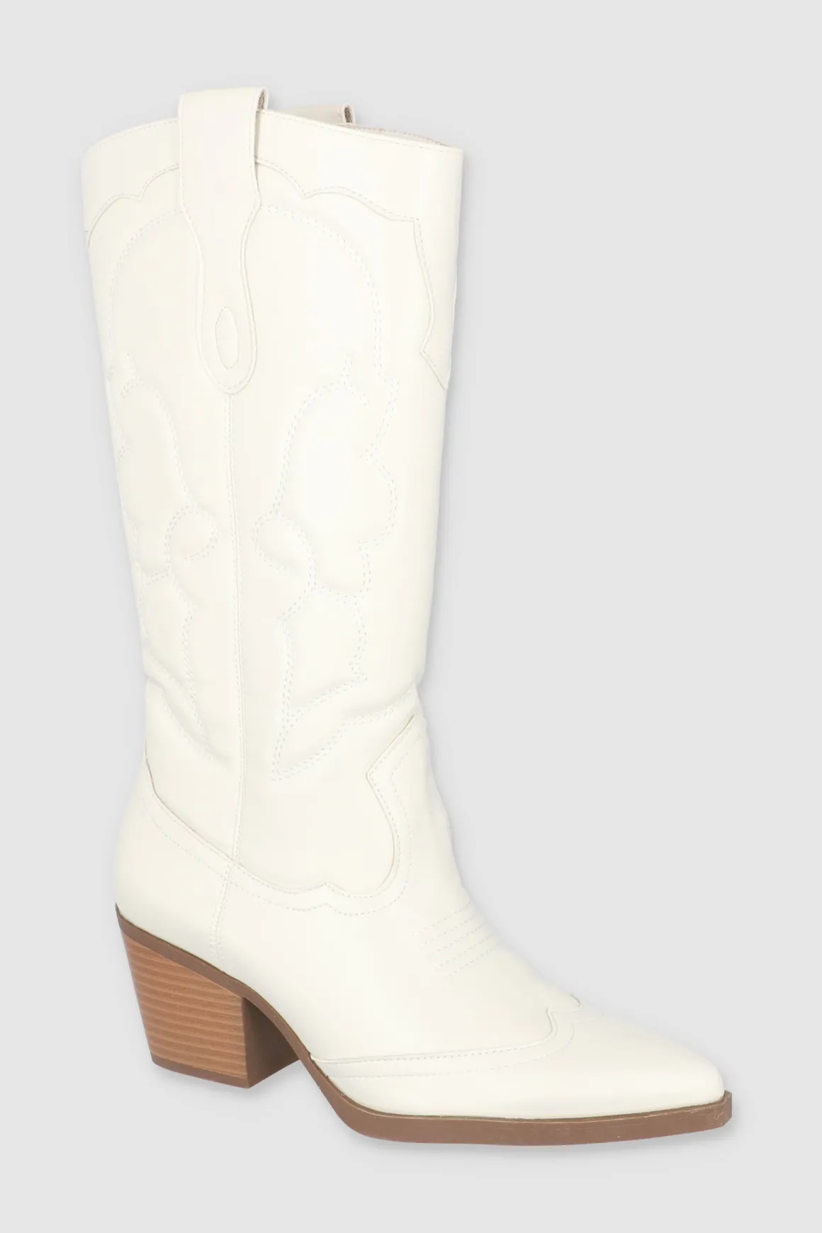 Dale un toque auténtico a tu estilo con estas botas vaqueras bordadas. El tacón ancho las hace perfectas para el día a día.