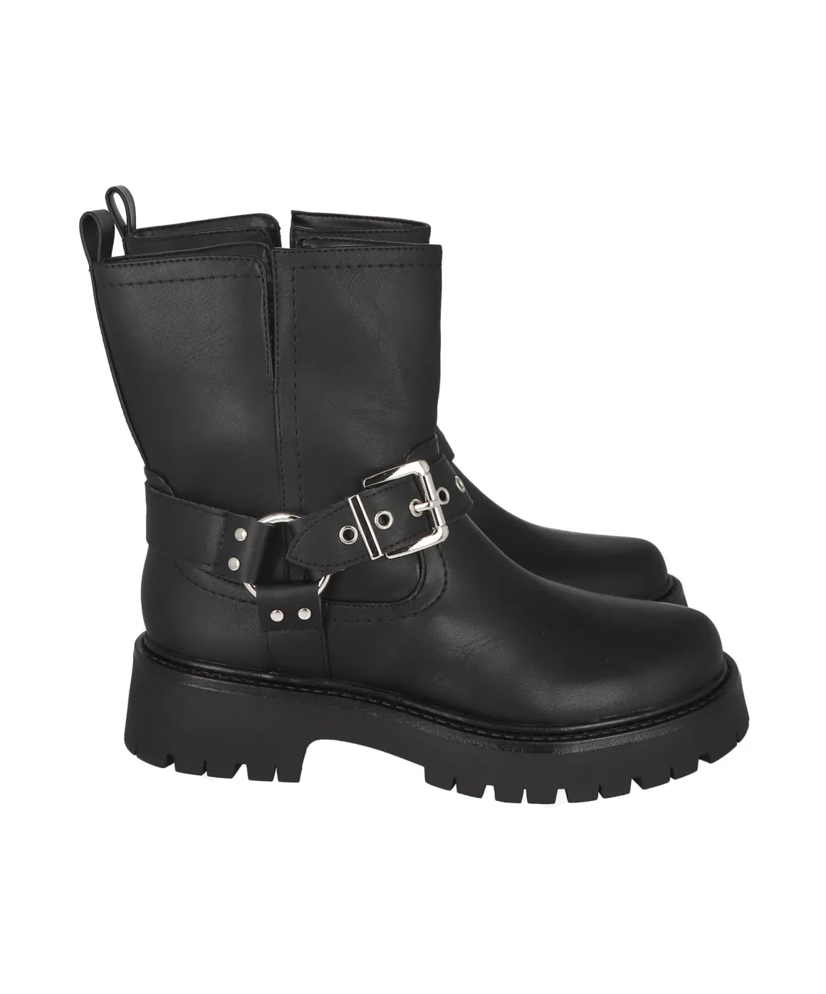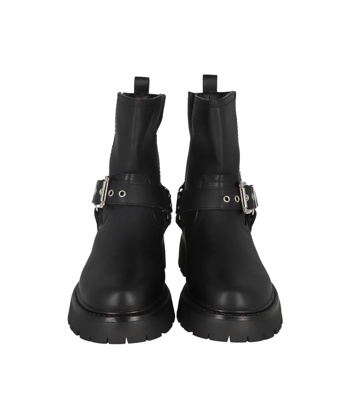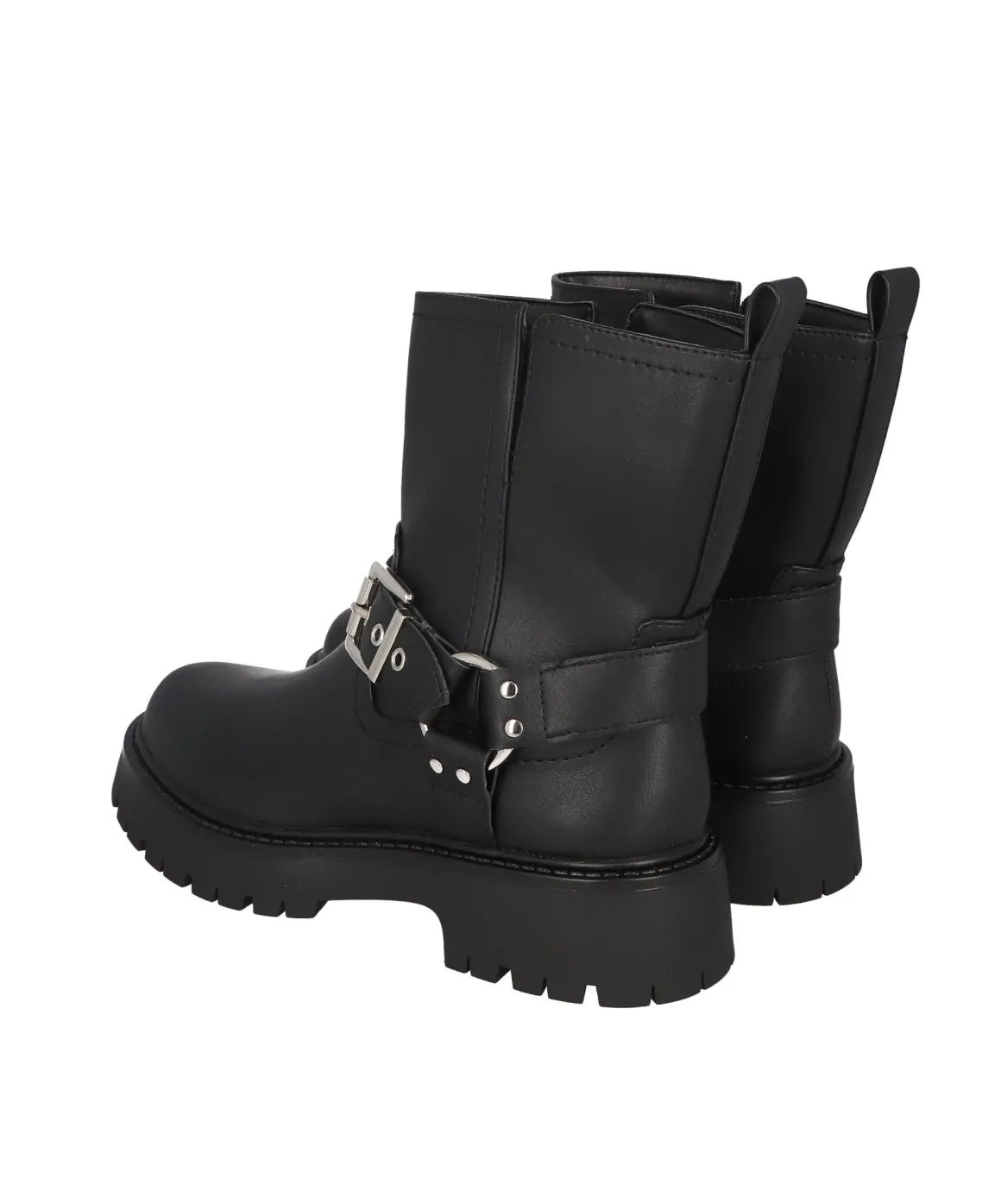 Botas biker de efecto piel con argolla redonda y hebillas de ajuste.