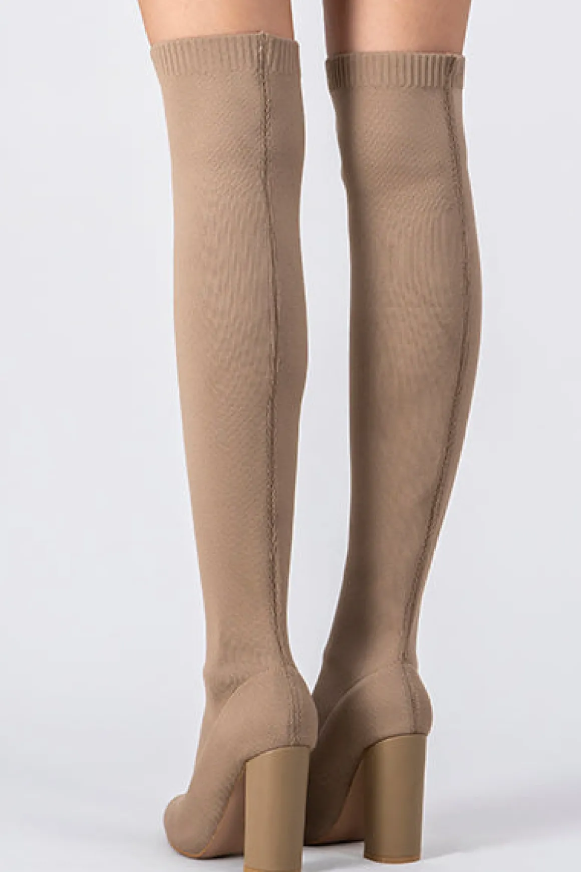 Botas overknee con tacón alto grueso. Con material elástico stretch. Diseño puntiagudo.