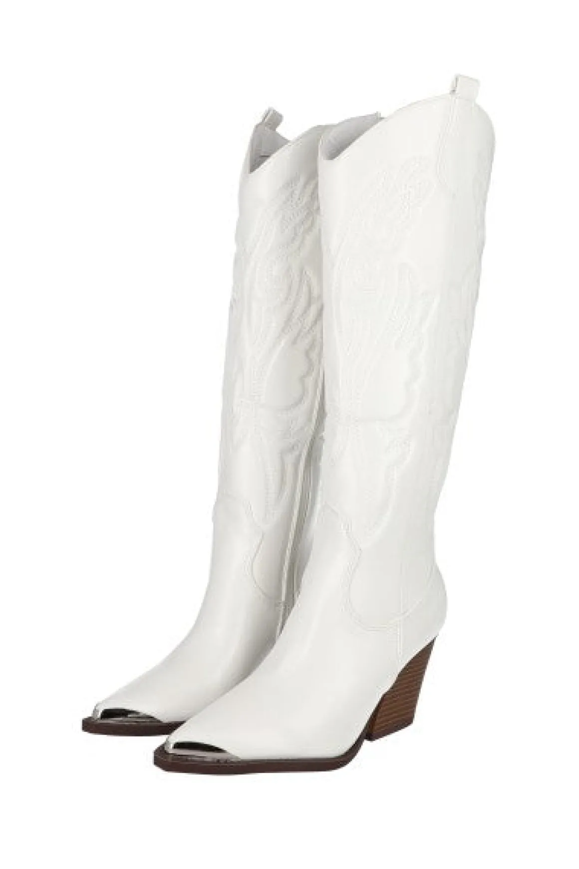 Botas vaqueras con tacón cuadrado y punta metálica. Tiradores laterales.