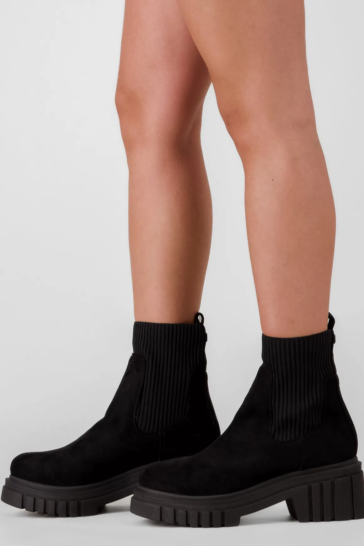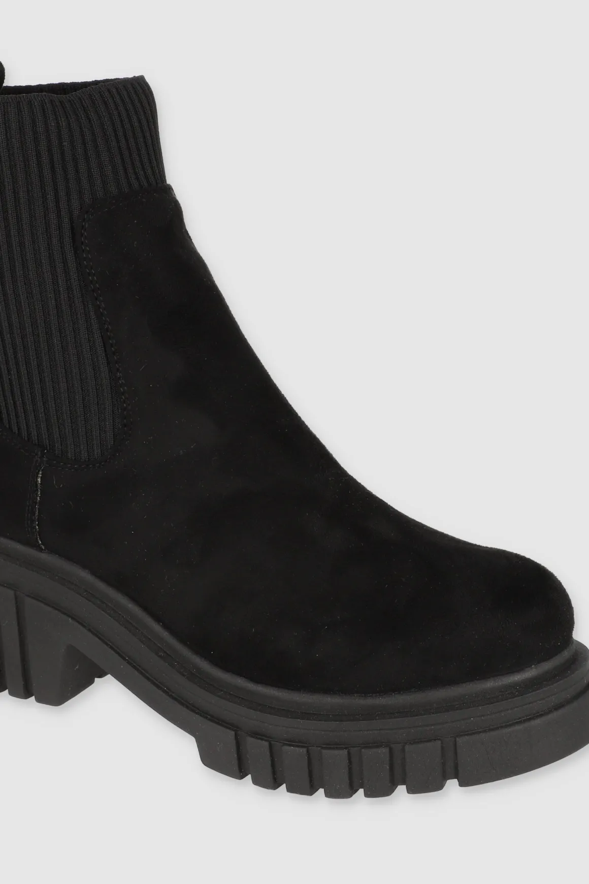 Estos botines chelsea se destacan por su estilo moderno y versátil. La suela dentada y el contraste en el tobillo tipo calcetín los convierten en el complemento ideal para tus looks más casuales. Perfectos para darle un toque audaz a tus atuendos.