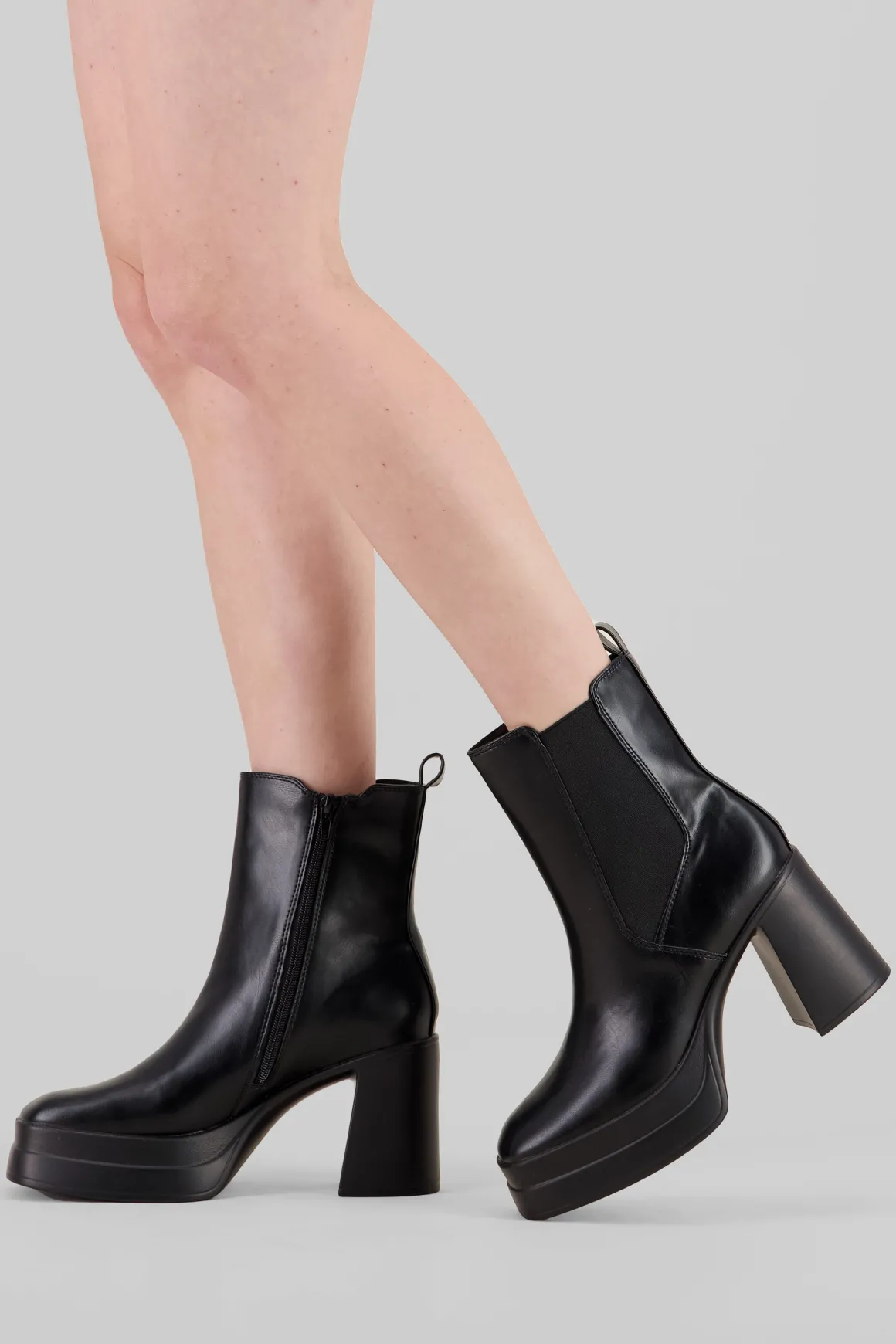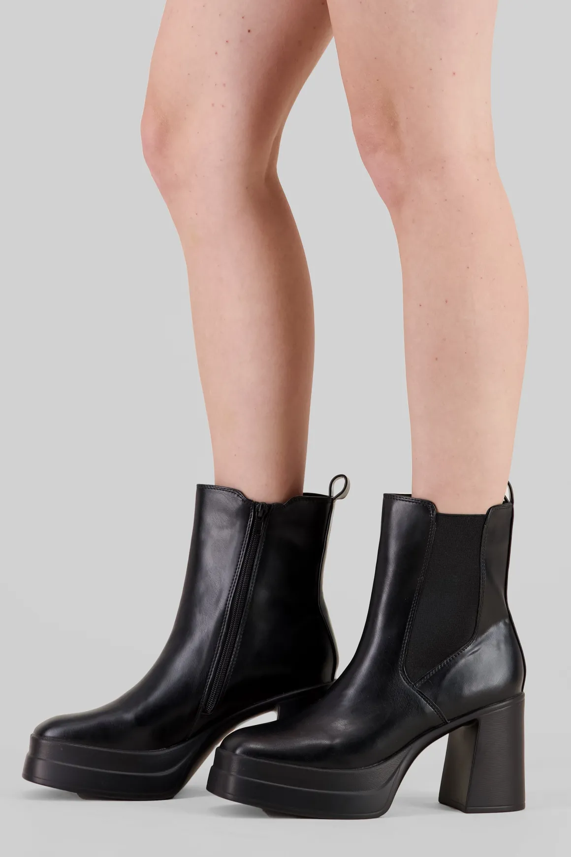Destaca con estilo con nuestro botín chelsea en efecto piel. Su tacón ancho y plataforma te brindarán la estabilidad que necesitas, mientras que la punta cuadrada y los tiradores superiores añaden un toque muy chic a tu look. Este botín es imprescindible en tu armario. ¡Haz una declaración de moda con cada paso que des!