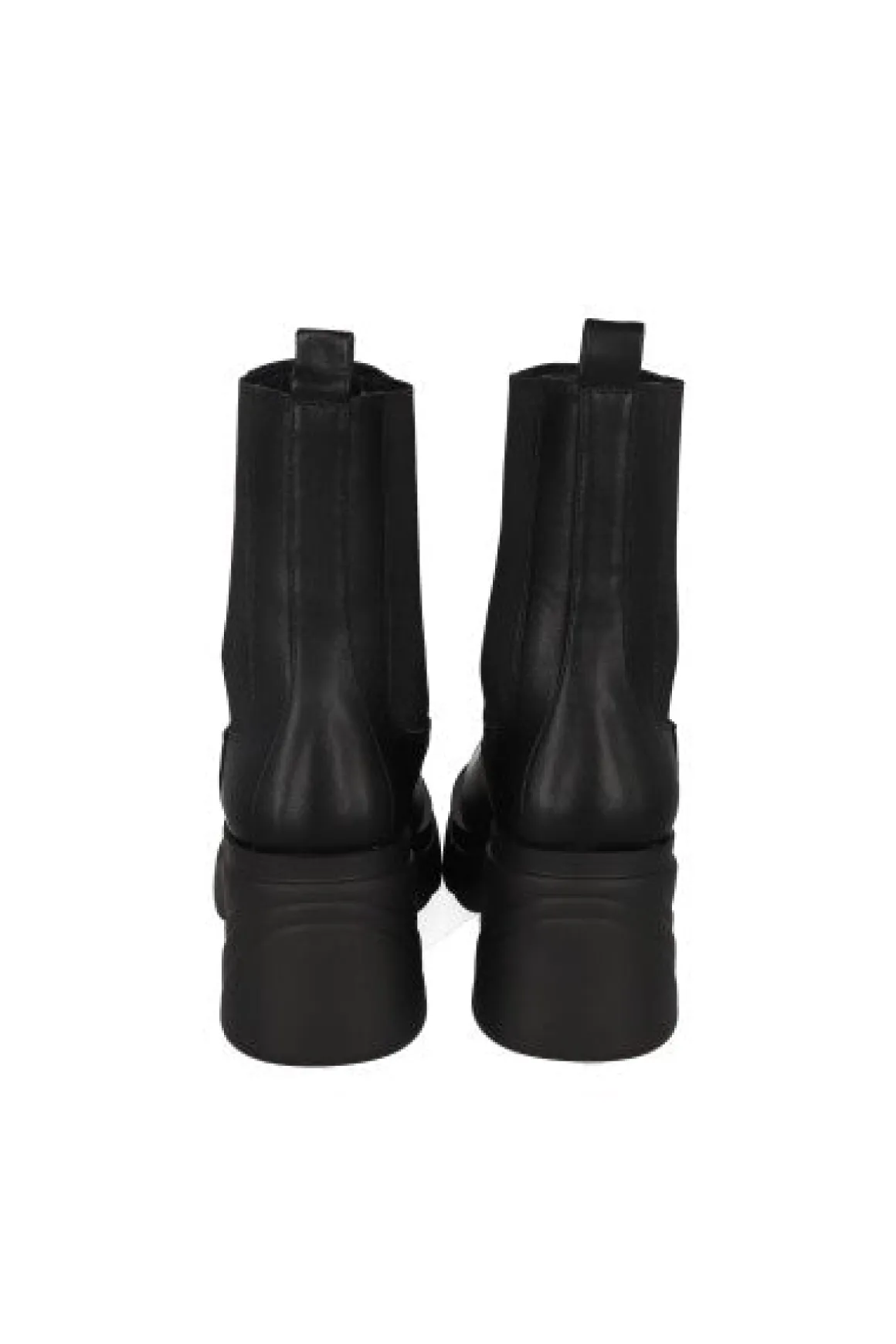 Descubre el botín chelsea en efecto piel con tacón grueso texturizado y plataforma dentada. Su diseño incluye elásticos en los laterales y tiradores traseros para brindarte comodidad y estilo a la vez.