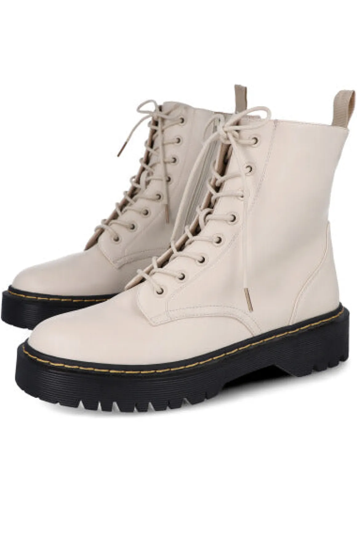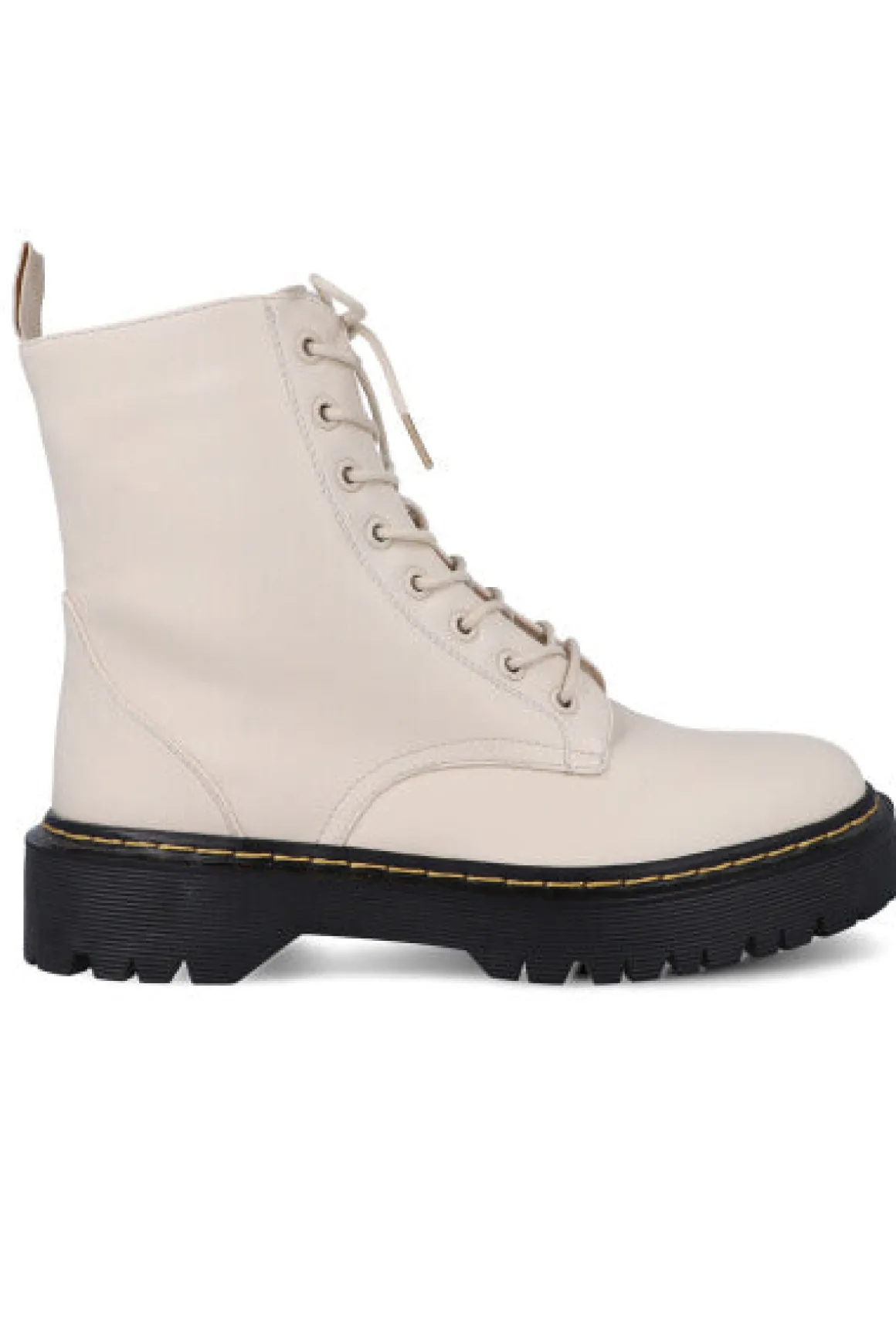 Destaca con estos botines combat que ofrecen comodidad y estilo. El efecto piel les da un aspecto moderno. Con agujetas y cierre de cremallera en los laterales, estos botines son fáciles de poner y quitar, lo que los hace ideales para un estilo de vida activo y urbano.