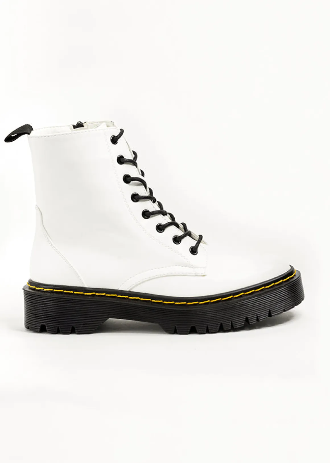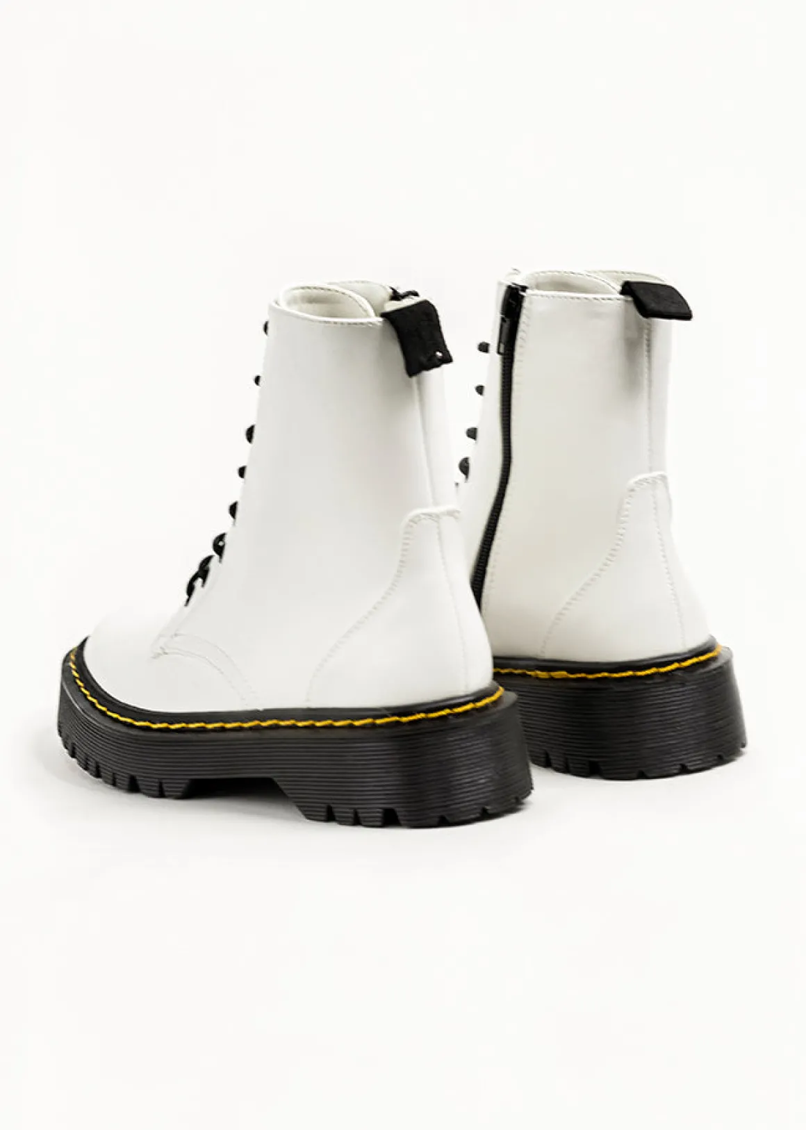 Destaca con estos botines combat que ofrecen comodidad y estilo. El efecto piel les da un aspecto moderno. Con agujetas y cierre de cremallera en los laterales, estos botines son fáciles de poner y quitar, lo que los hace ideales para un estilo de vida activo y urbano.