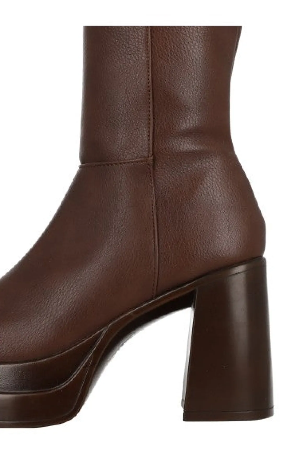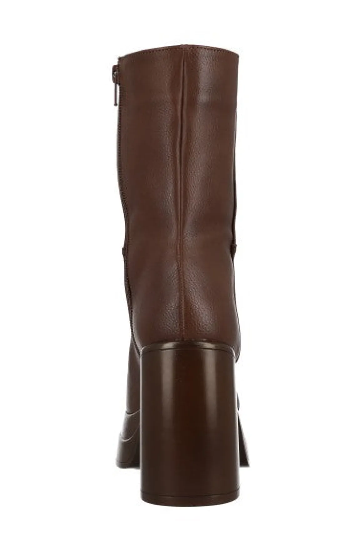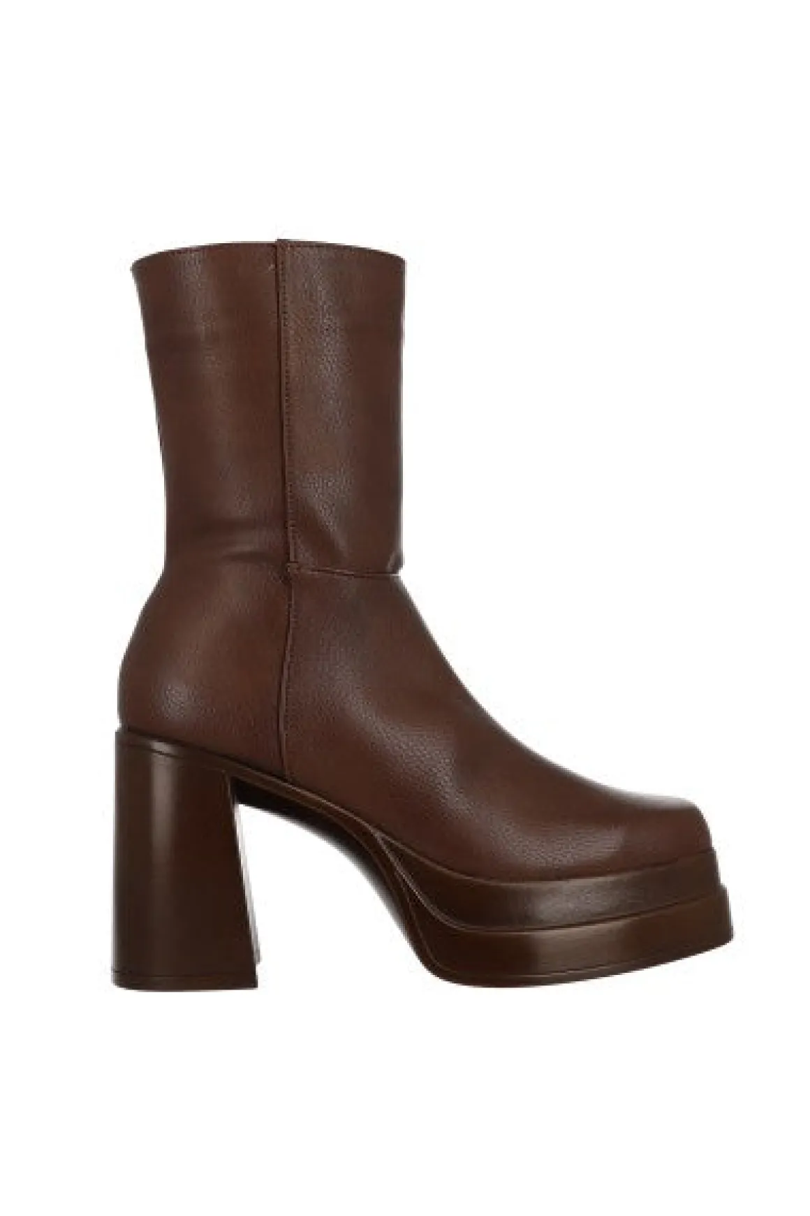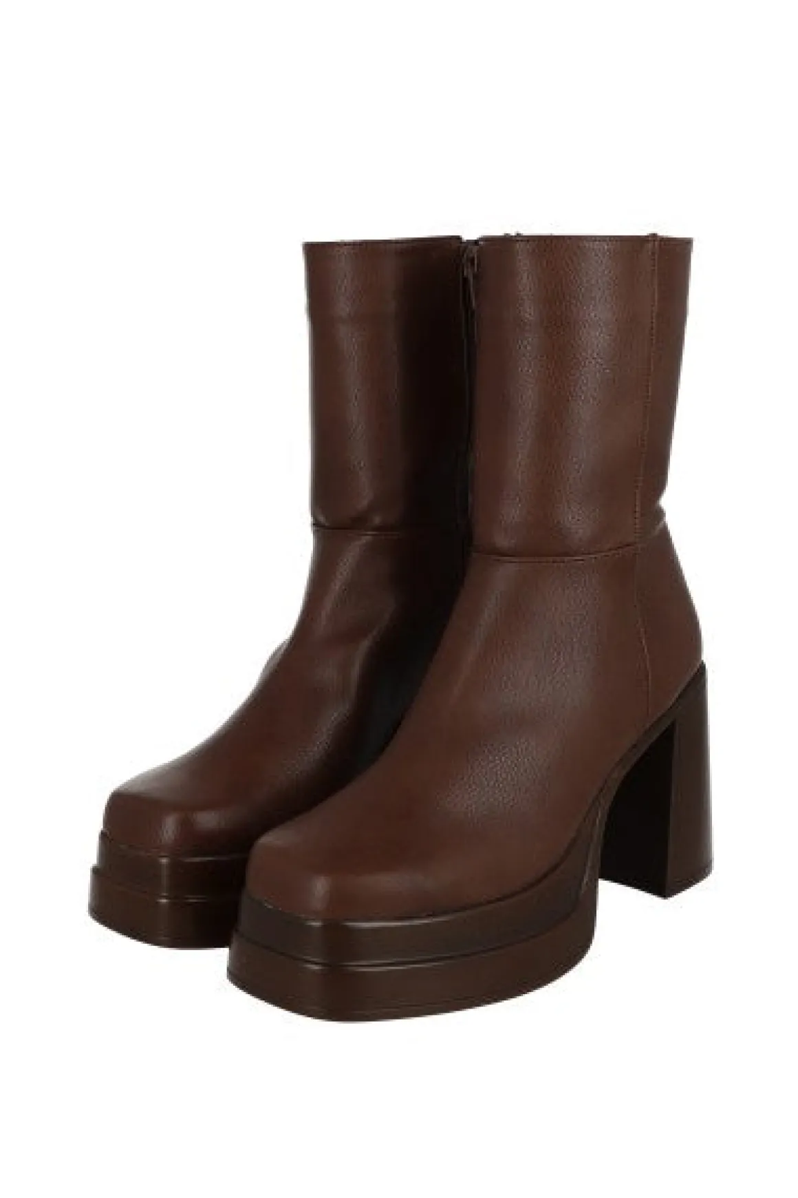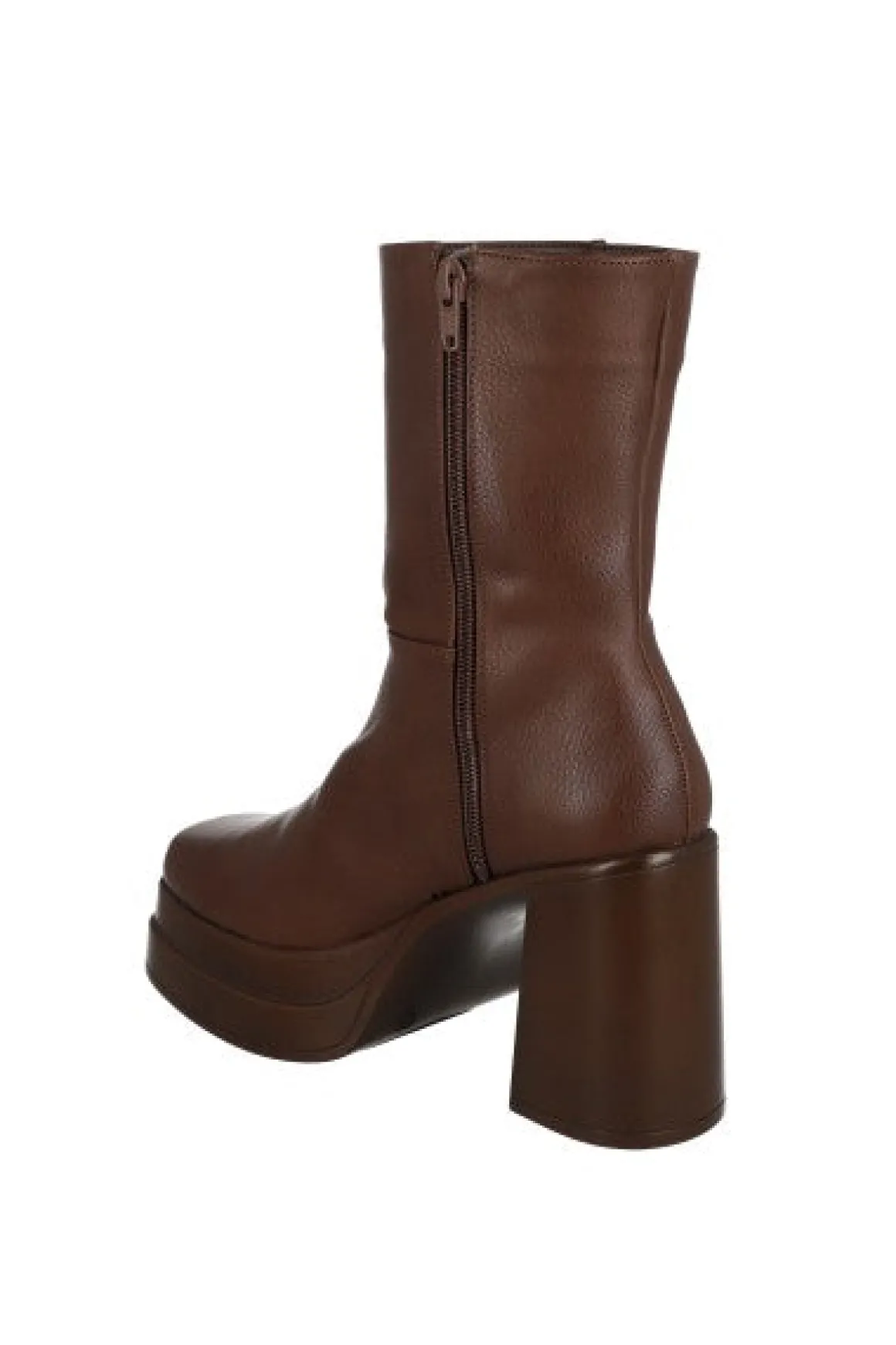 Descubre el estilo único del botín midi de efecto piel liso. Con un tacón bloque bajo y doble plataforma, este botín agrega altura y estilo a tu look. El cierre lateral asegura un ajuste seguro. Ya sea para una salida casual o una ocasión especial, este botín es la opción perfecta para destacar tu estilo con confianza.