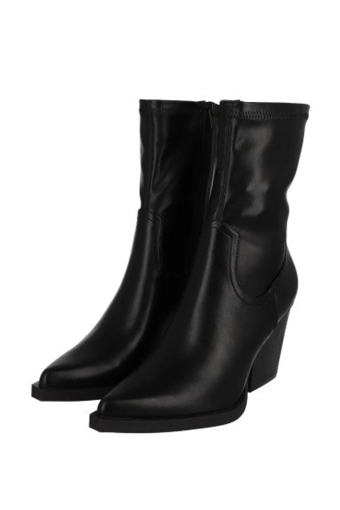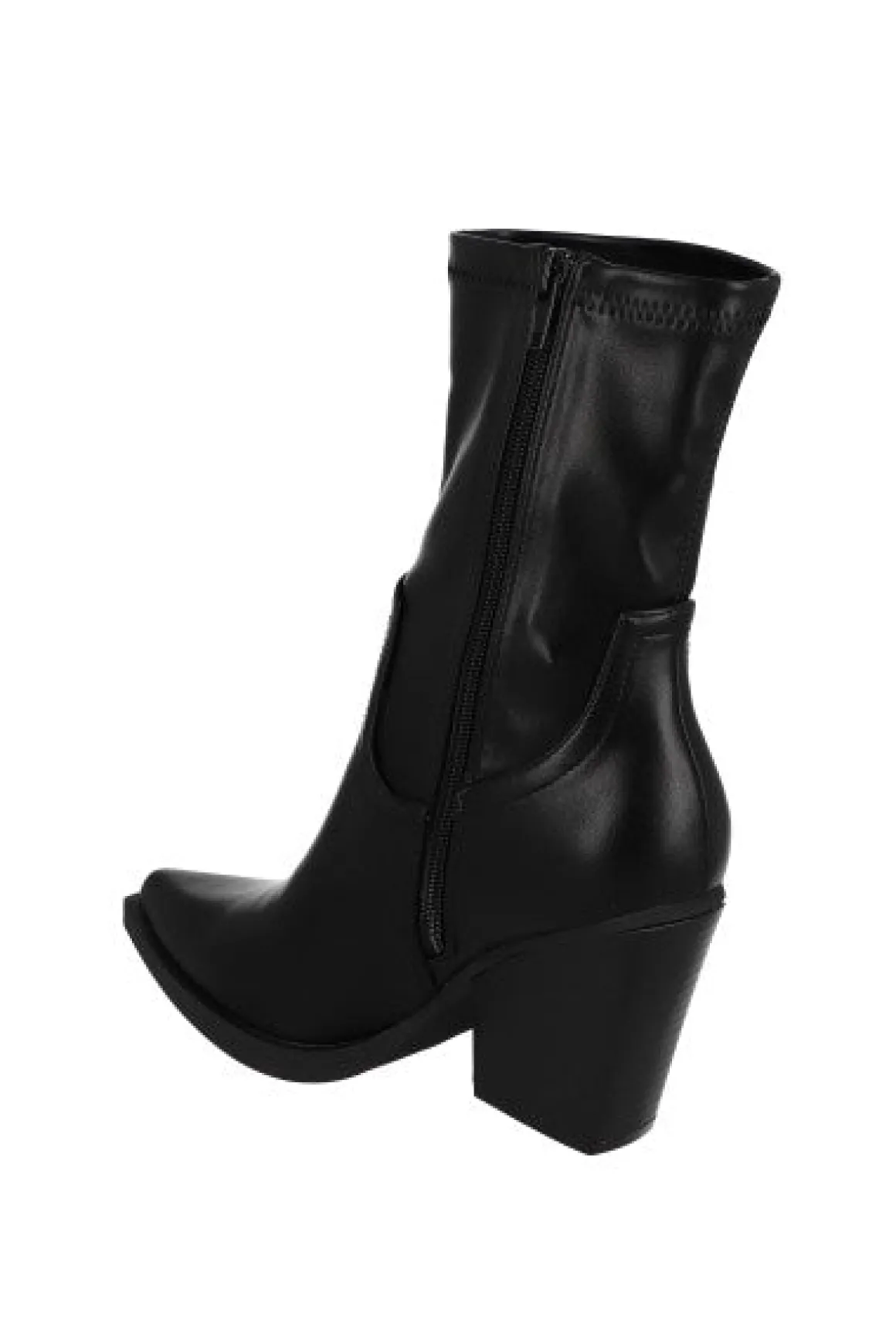 Este botín midi presenta un elegante efecto piel puntiagudo. Su tacón grueso bajo ofrece comodidad y estilo a la vez. Con cierres laterales para un ajuste seguro y sencillo.
