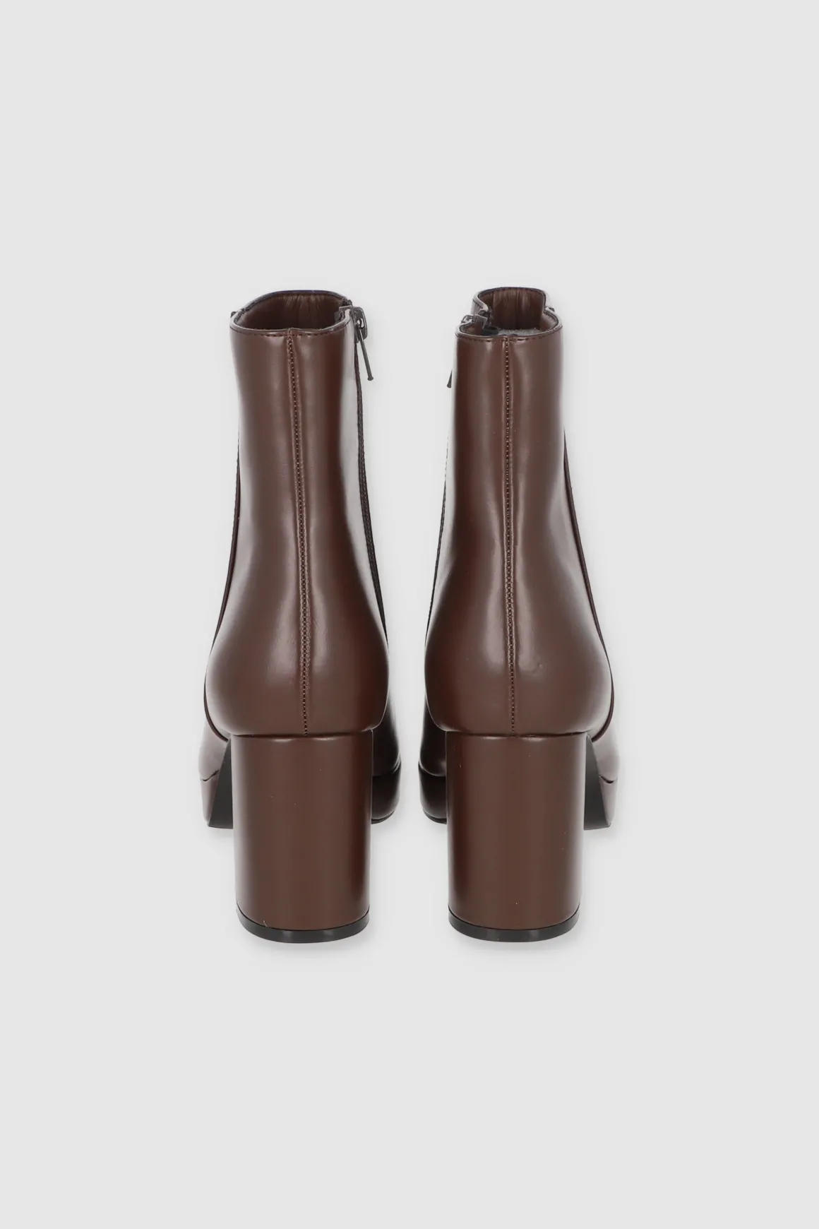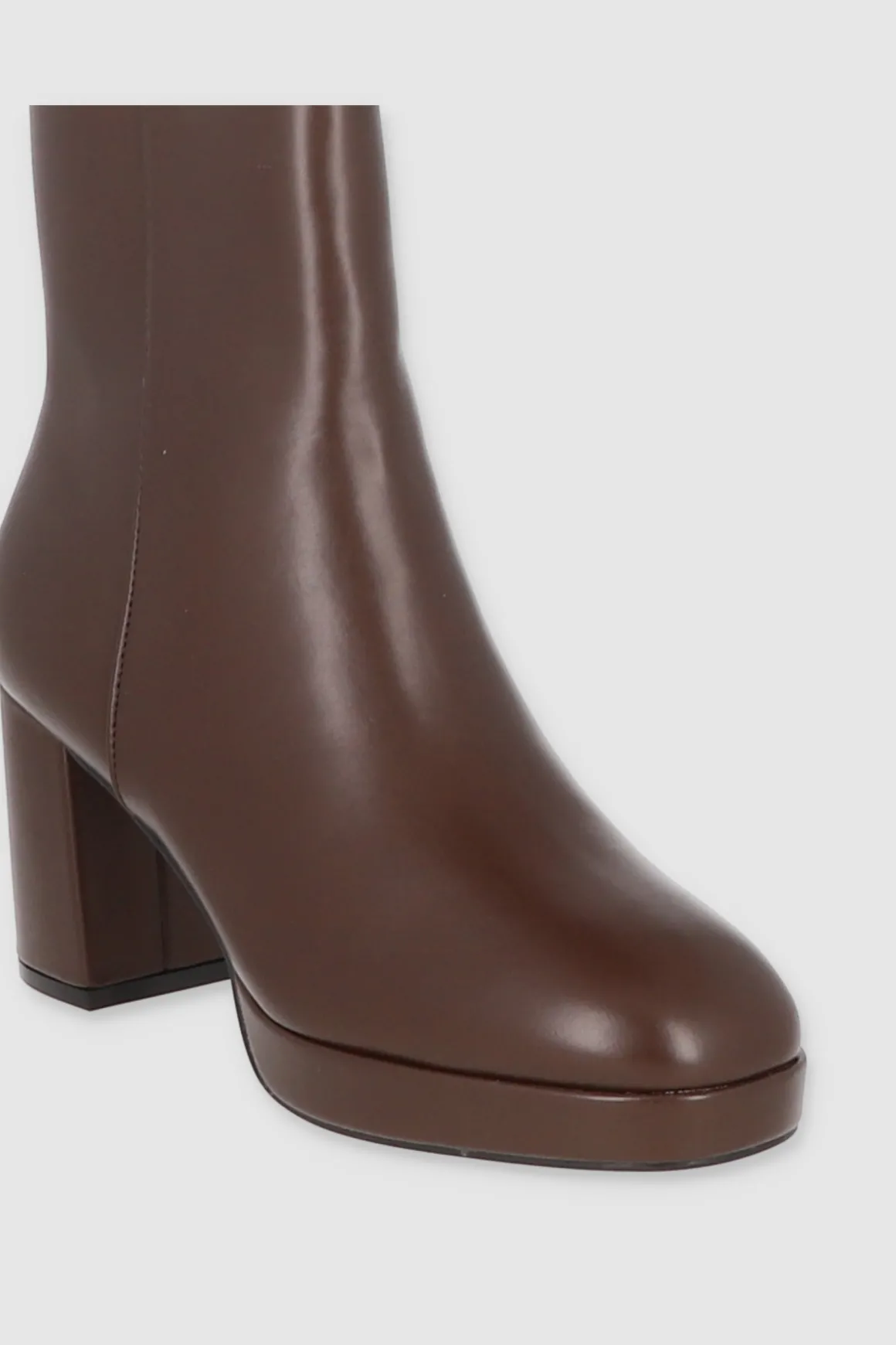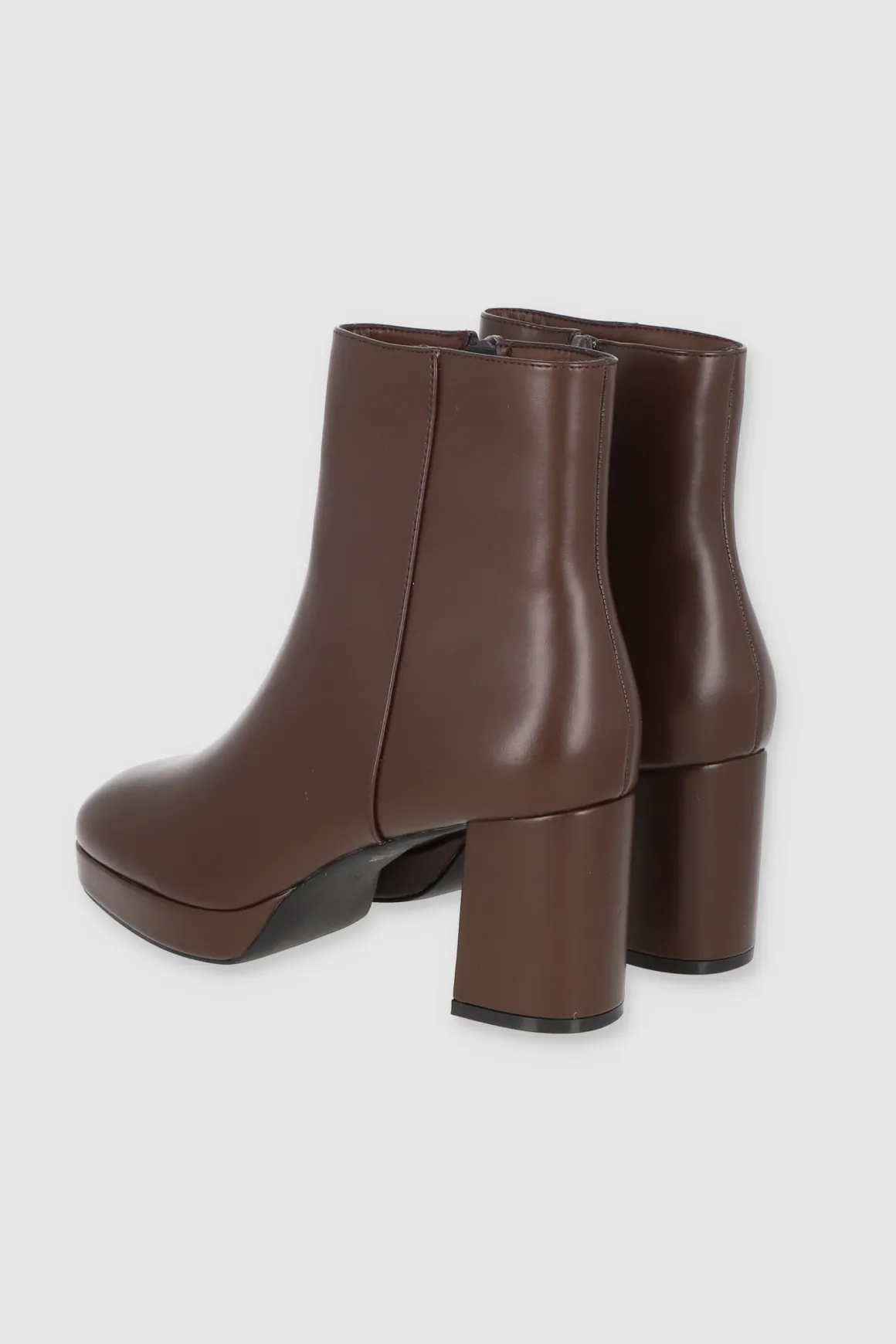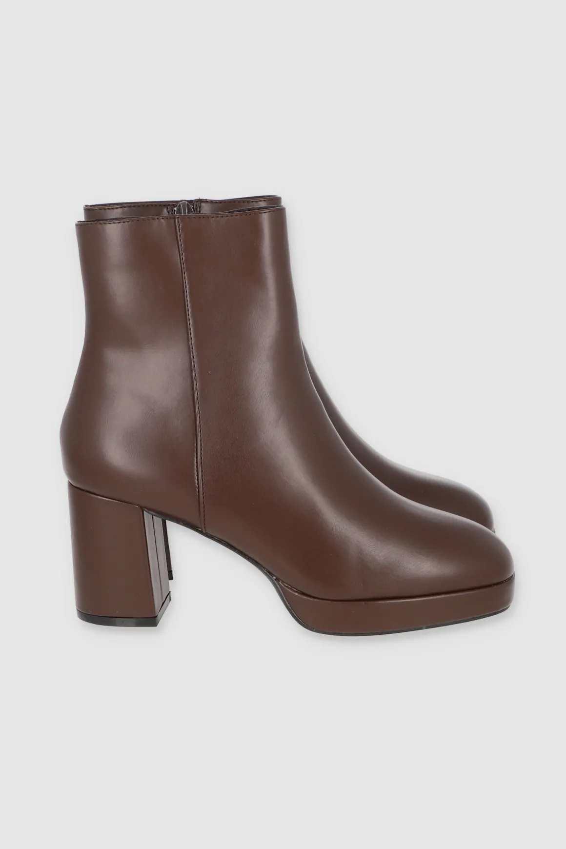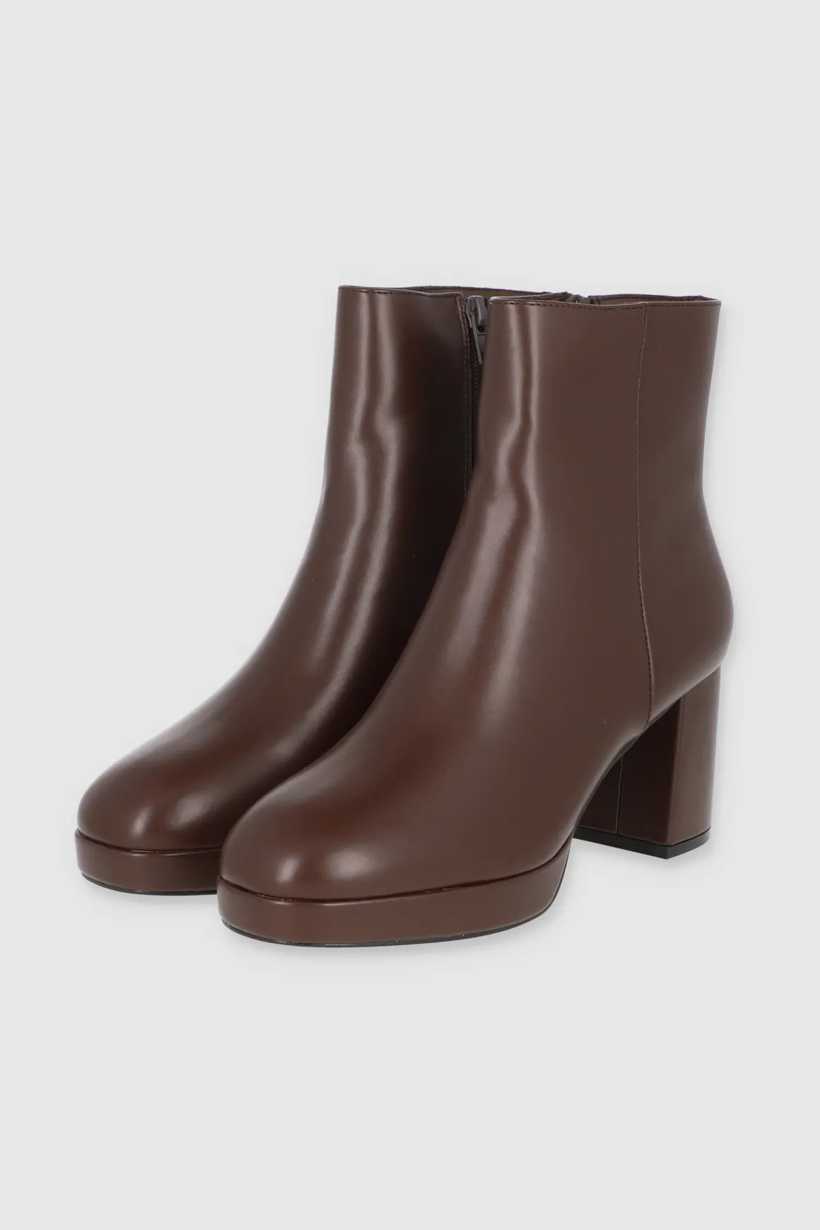 Descubre nuestro elegante botín de efecto piel con tacón ancho, perfecto para cualquier ocasión. Con su cierre lateral mediante cremallera.