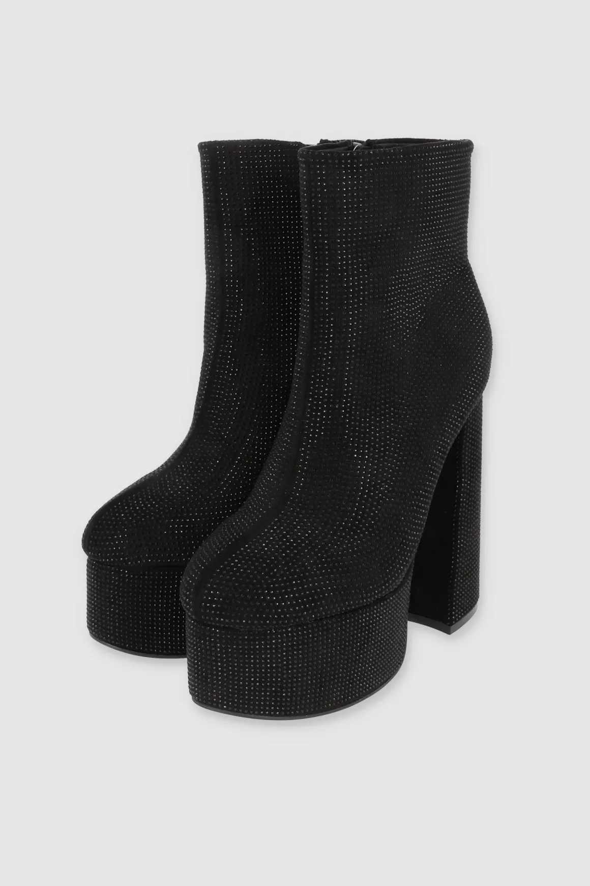 Descubre nuestro increíble botín de tacón con plataforma que te brinda comodidad y estilo en cada paso. Con un diseño de brillos y costuras, este botín muestra tu personalidad única con cada paso que das.